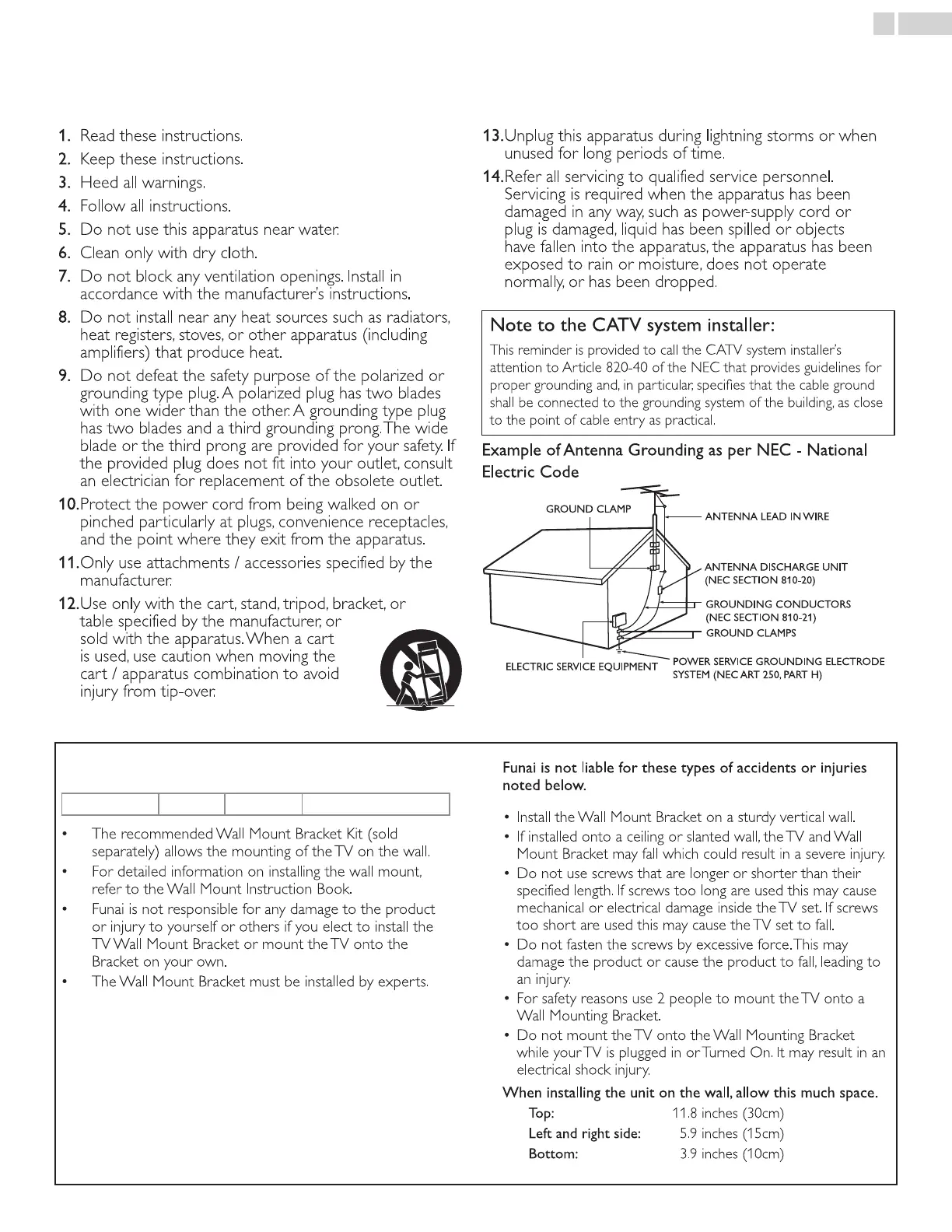 Funai is not liable for these types of accidents or injuries