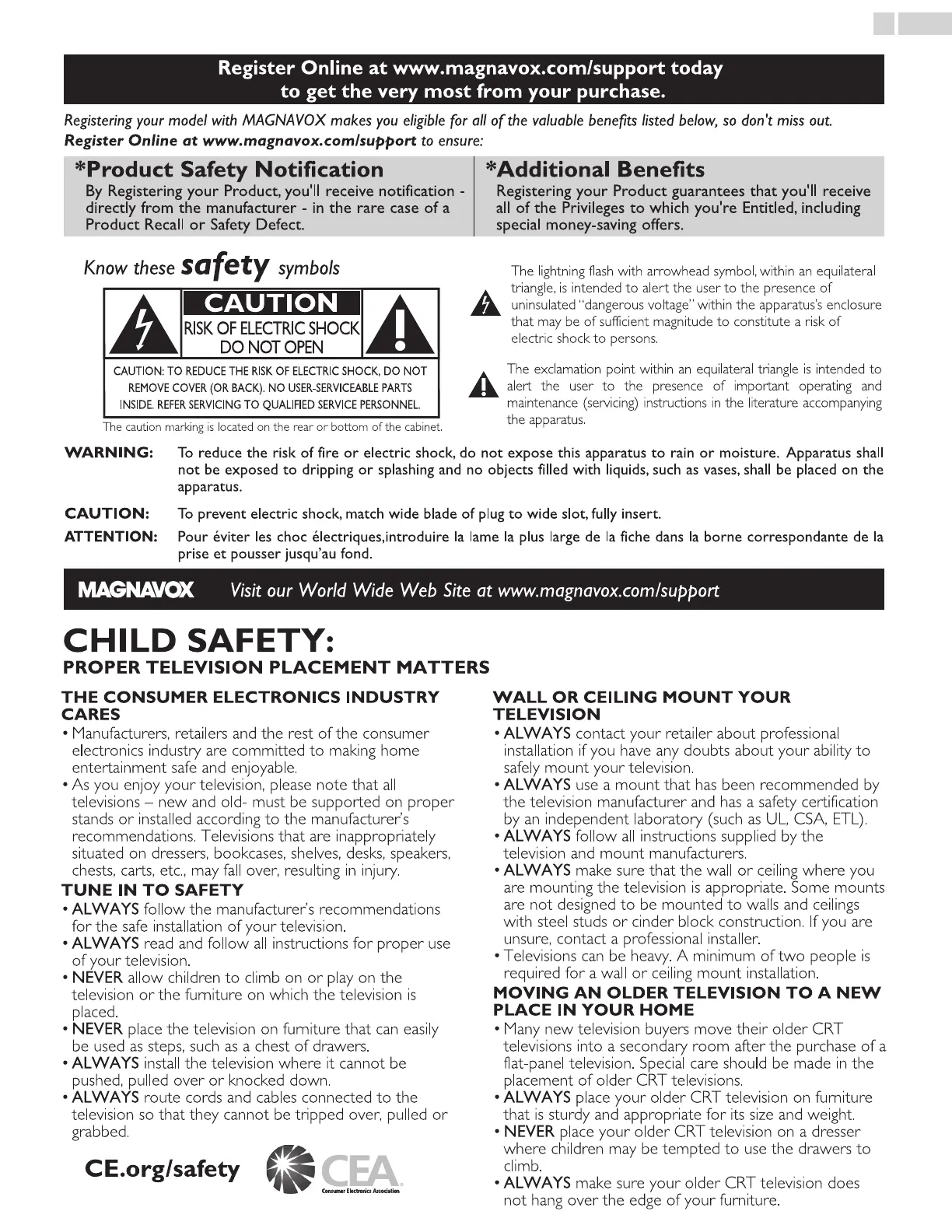 Registering your model with MAGNAVOX makes you eligible for all of the valuable benefits listed below, so don't miss out.