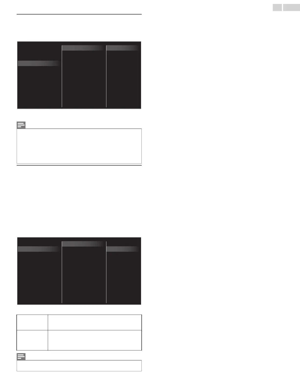 of Picture and Sound quality selections according to