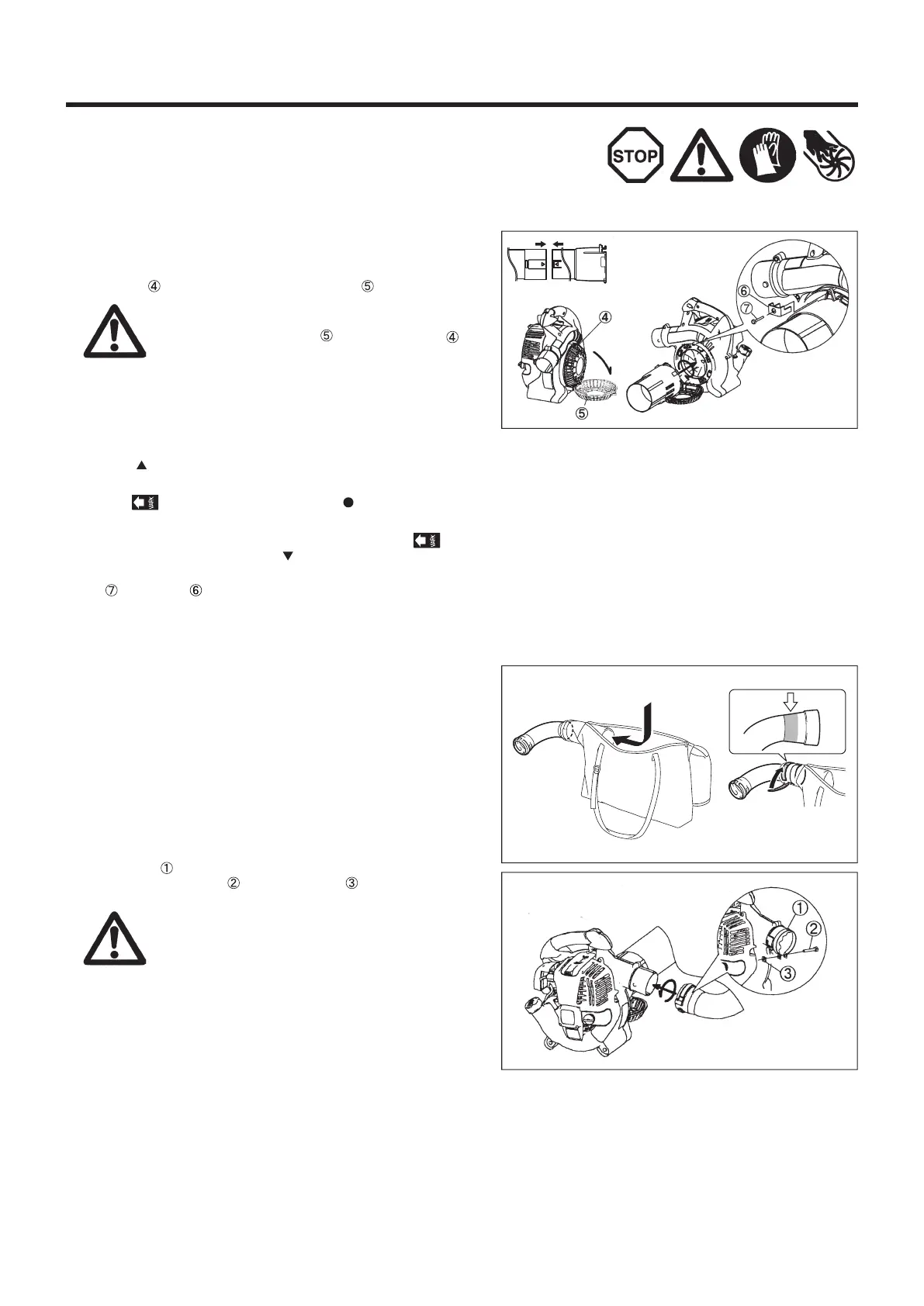 FORSIGTIG: Start først blæseapparatet/sugetilbehøret efter den