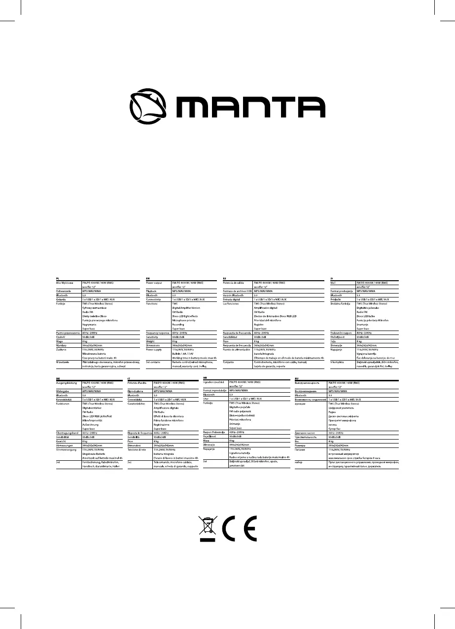 Bekijk gratis de handleiding van Manta SPK5033, stel vragen en lees de antwoorden op veelvoorkomende problemen, of gebruik onze assistent om sneller informatie in de handleiding te vinden of uitleg te krijgen over specifieke functies.