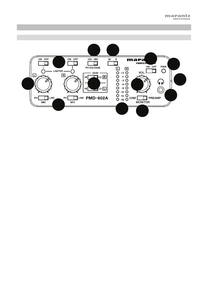 2. Phantom Power Selector: When using condenser microphones, set the phantom power