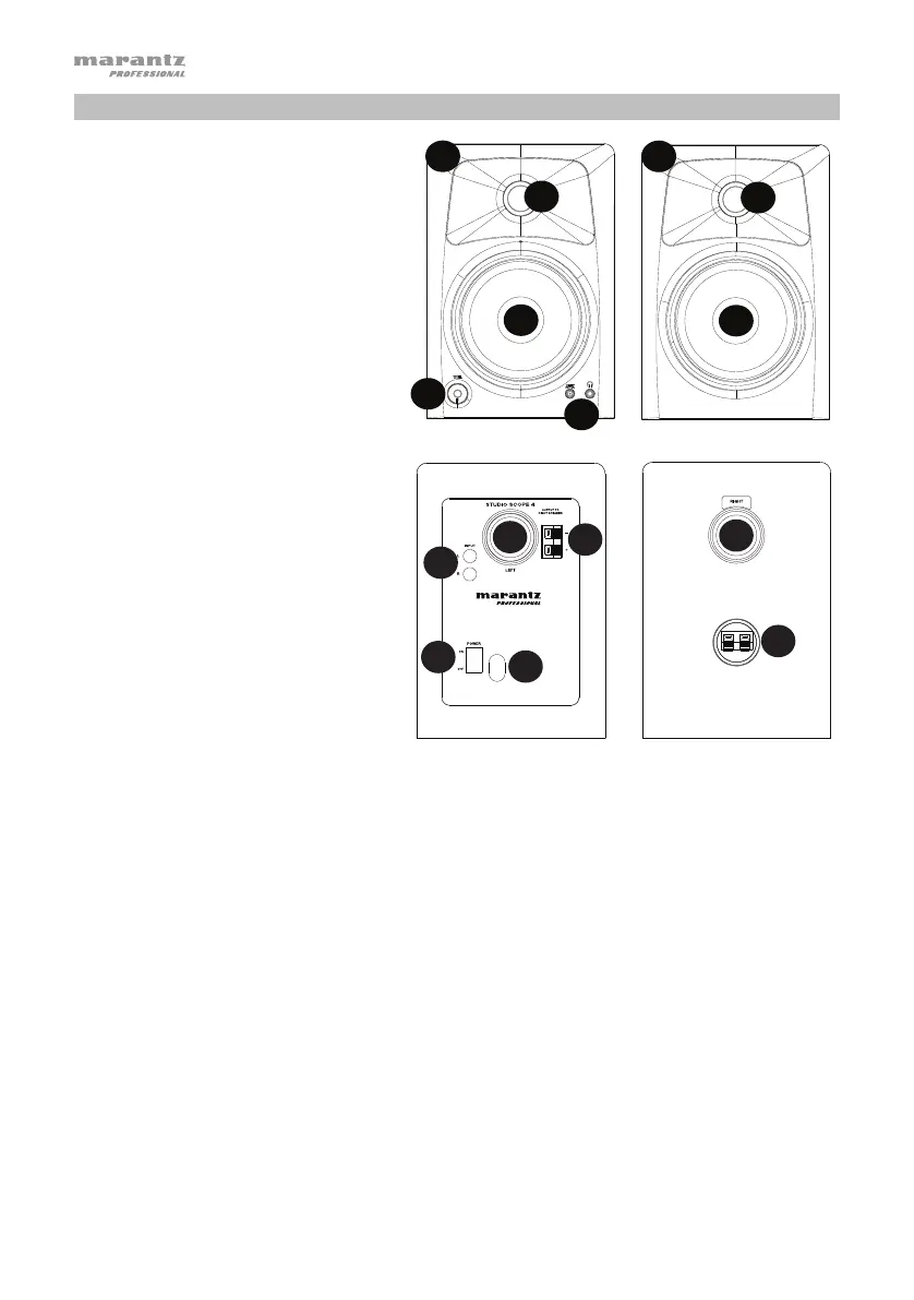 9. Power Switch: Use this switch to power the loudspeaker on or off.