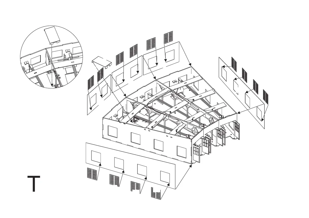 Draden bevestigen. Let daarbij op de deurmechanieken.