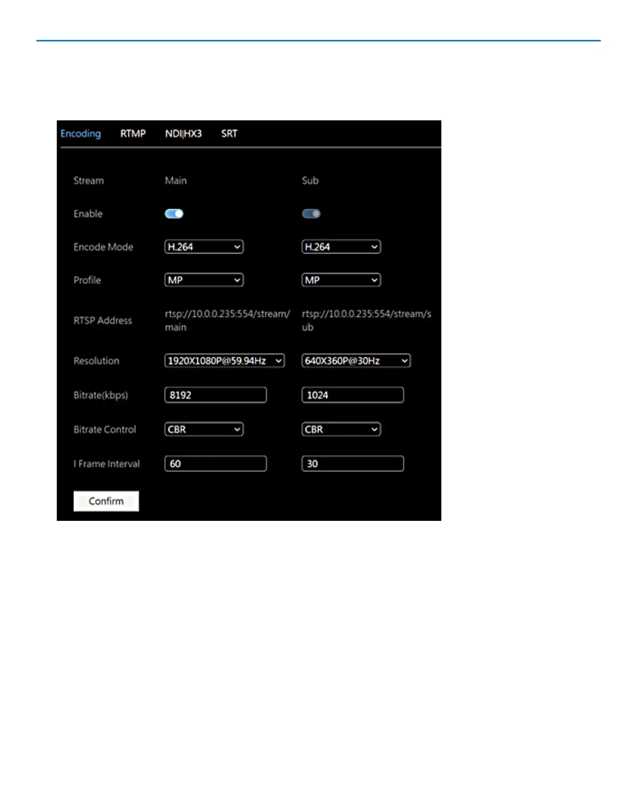 Note: When NDI HX3 is selected, bitrate, bitrate control and i frame interval will not be available