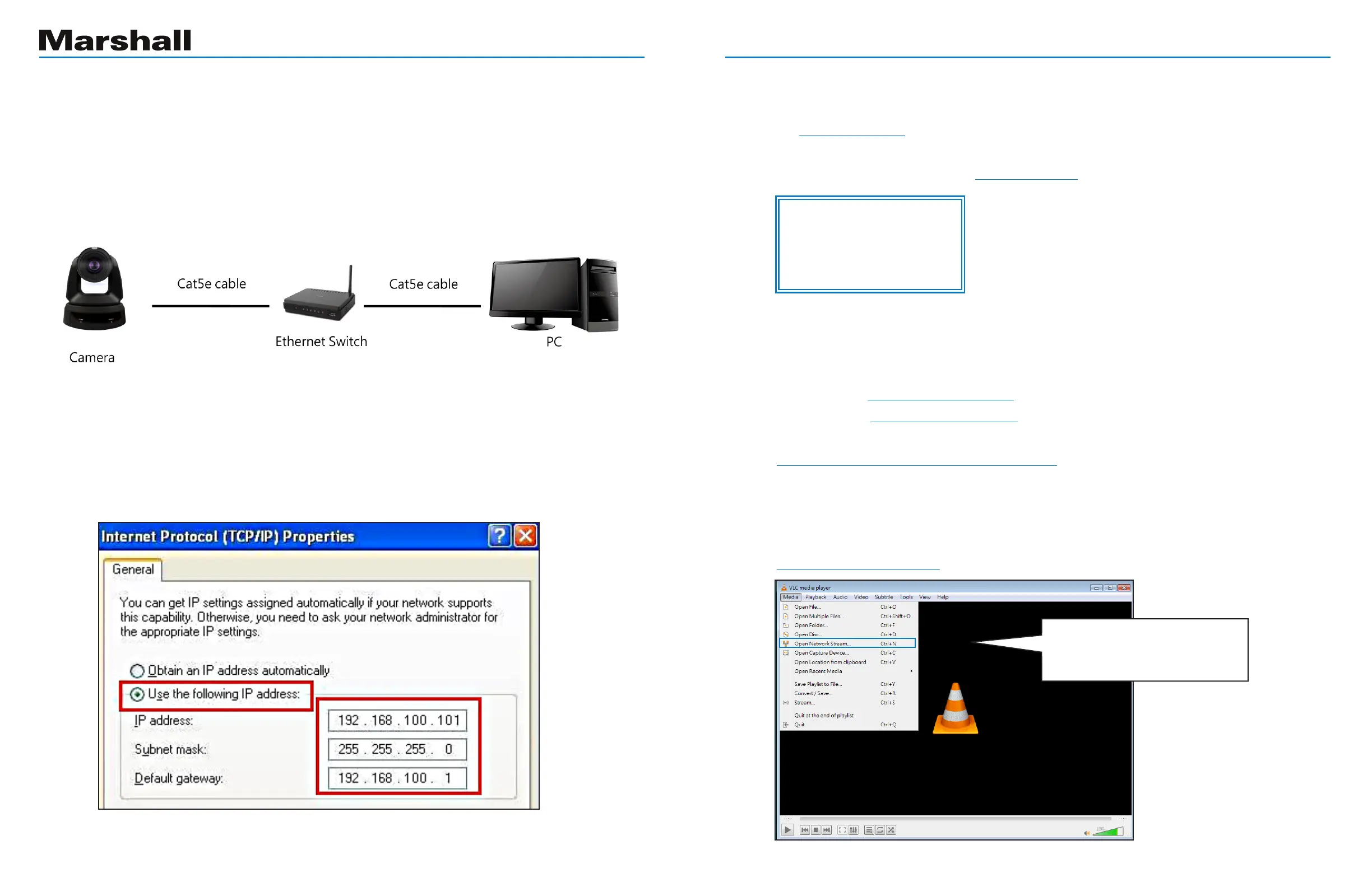 E.g.: The factory-preset default IP address of the camera is 192.168.100.100. The computer IP address must