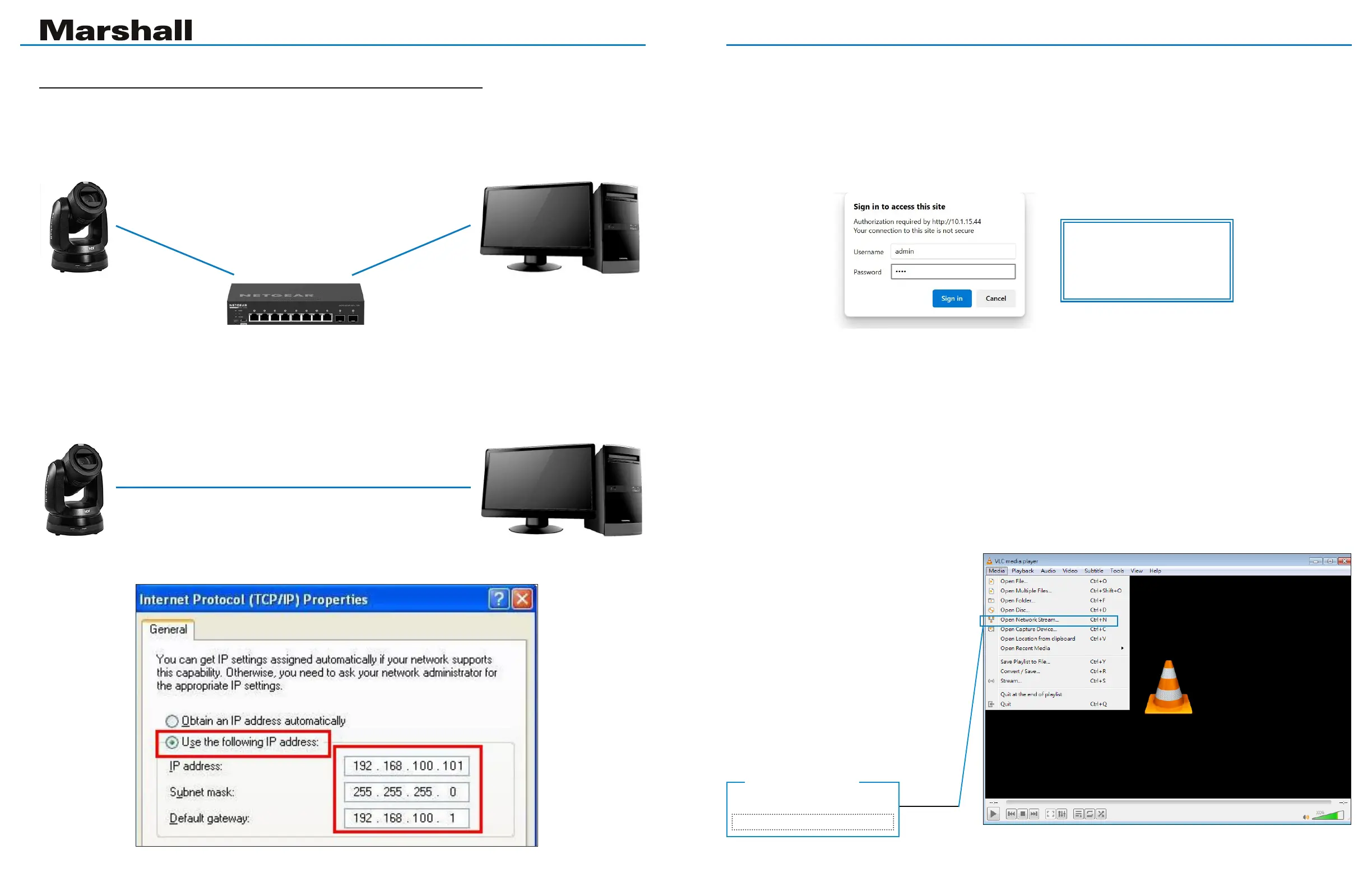 E.g.: The factory-preset default IP address of the camera is 192.168.100.100. The computer IP address
