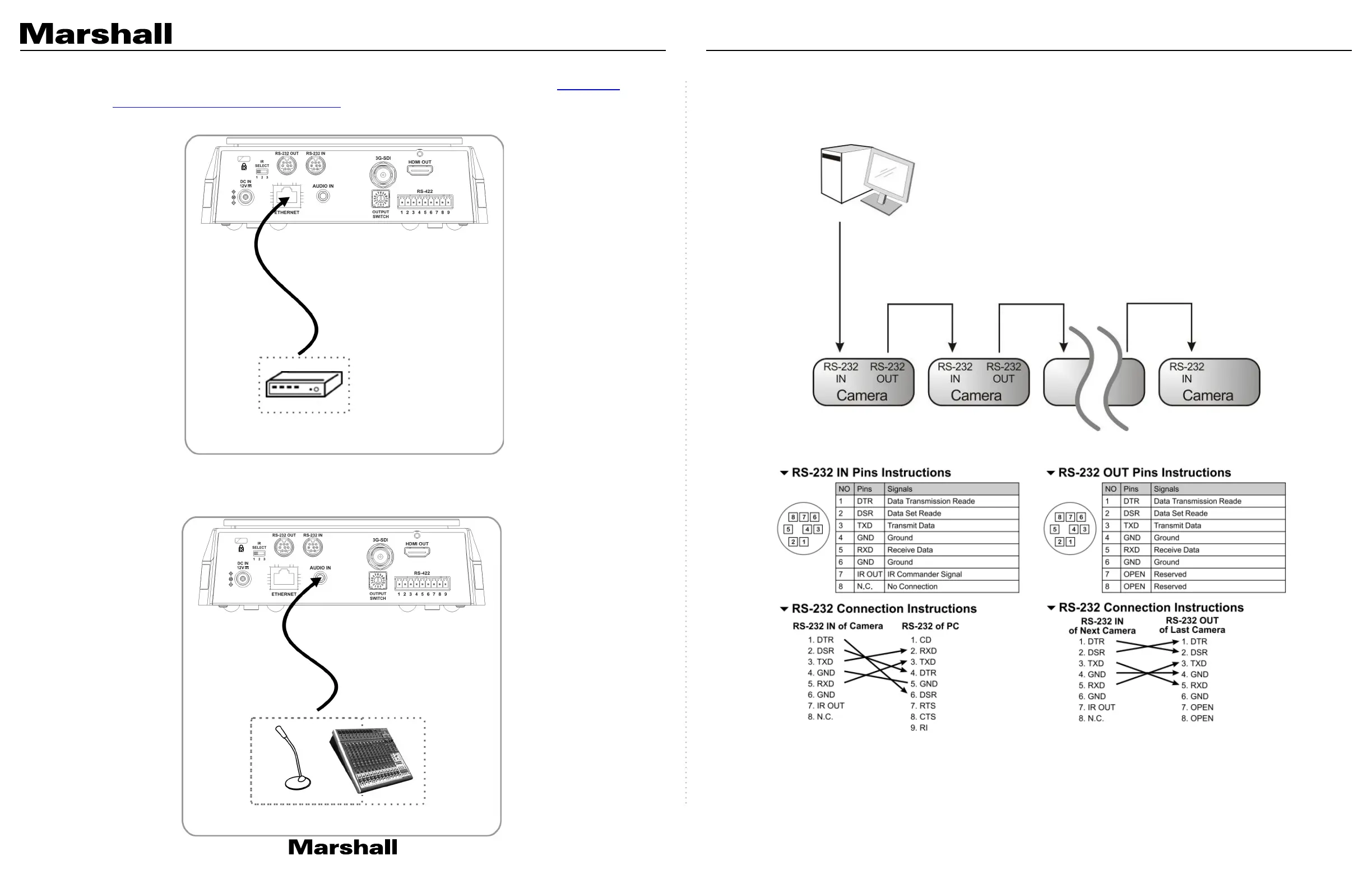 With RS-232 in/out, at most 7 Marshall cameras can be connected.