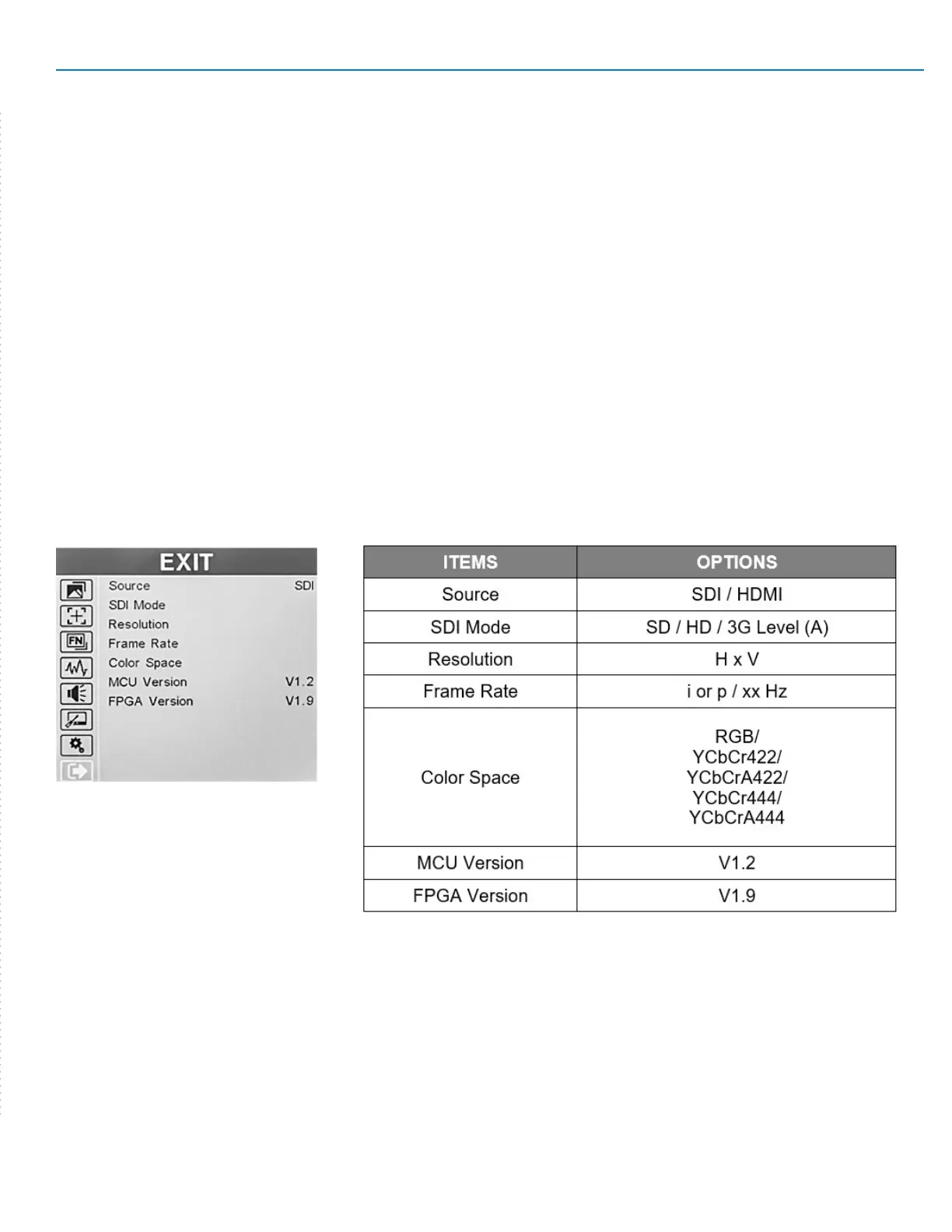 SDI Mode – The current SDI signal type. (HDMI type is not displayed).
