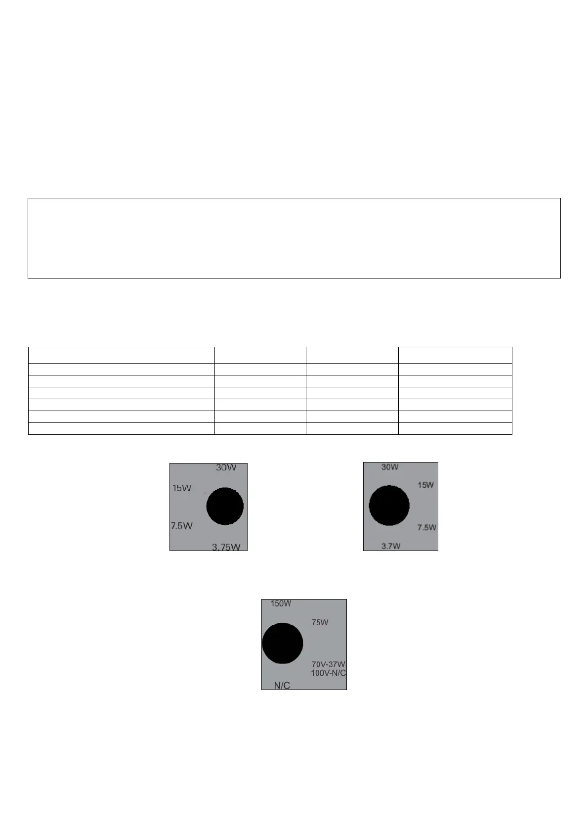 70V, 100V 30W 3.7W, 7.5W, 15W, 30W