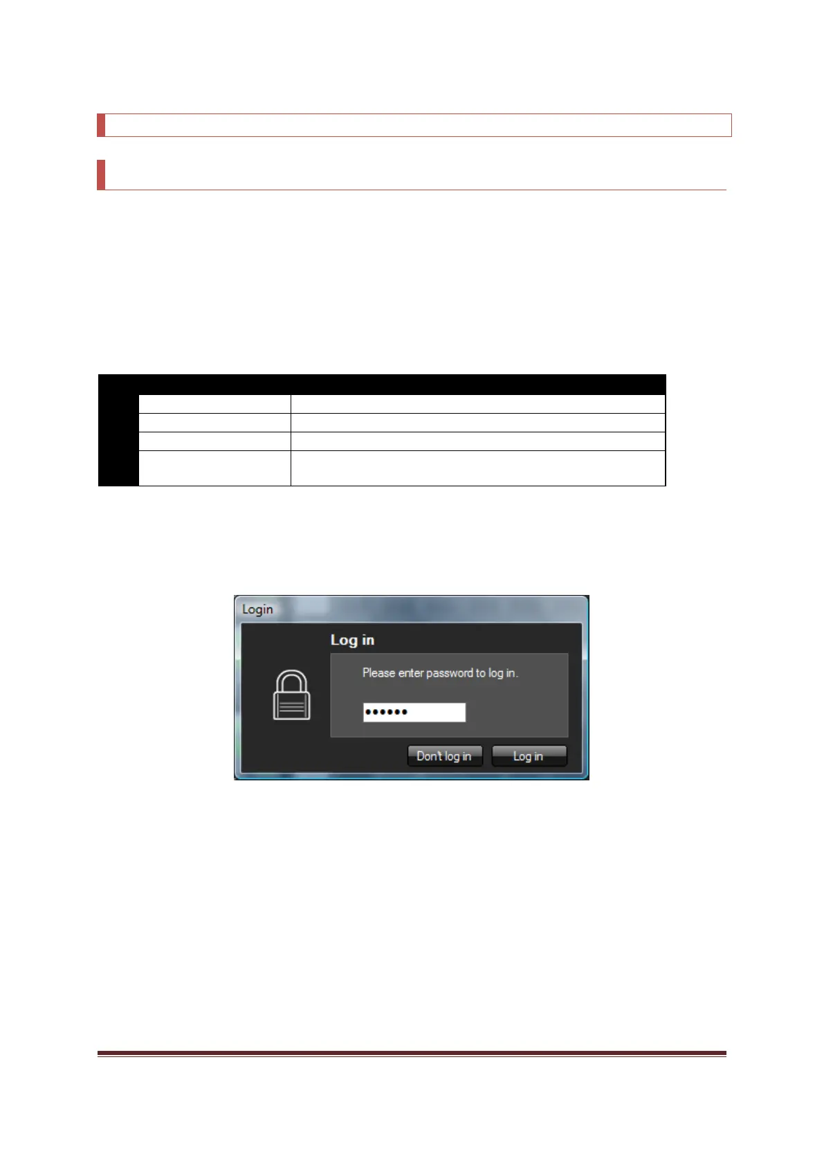 with the level at which you wish to access the device. Selecting “Don’t log in” results in level 0 access.