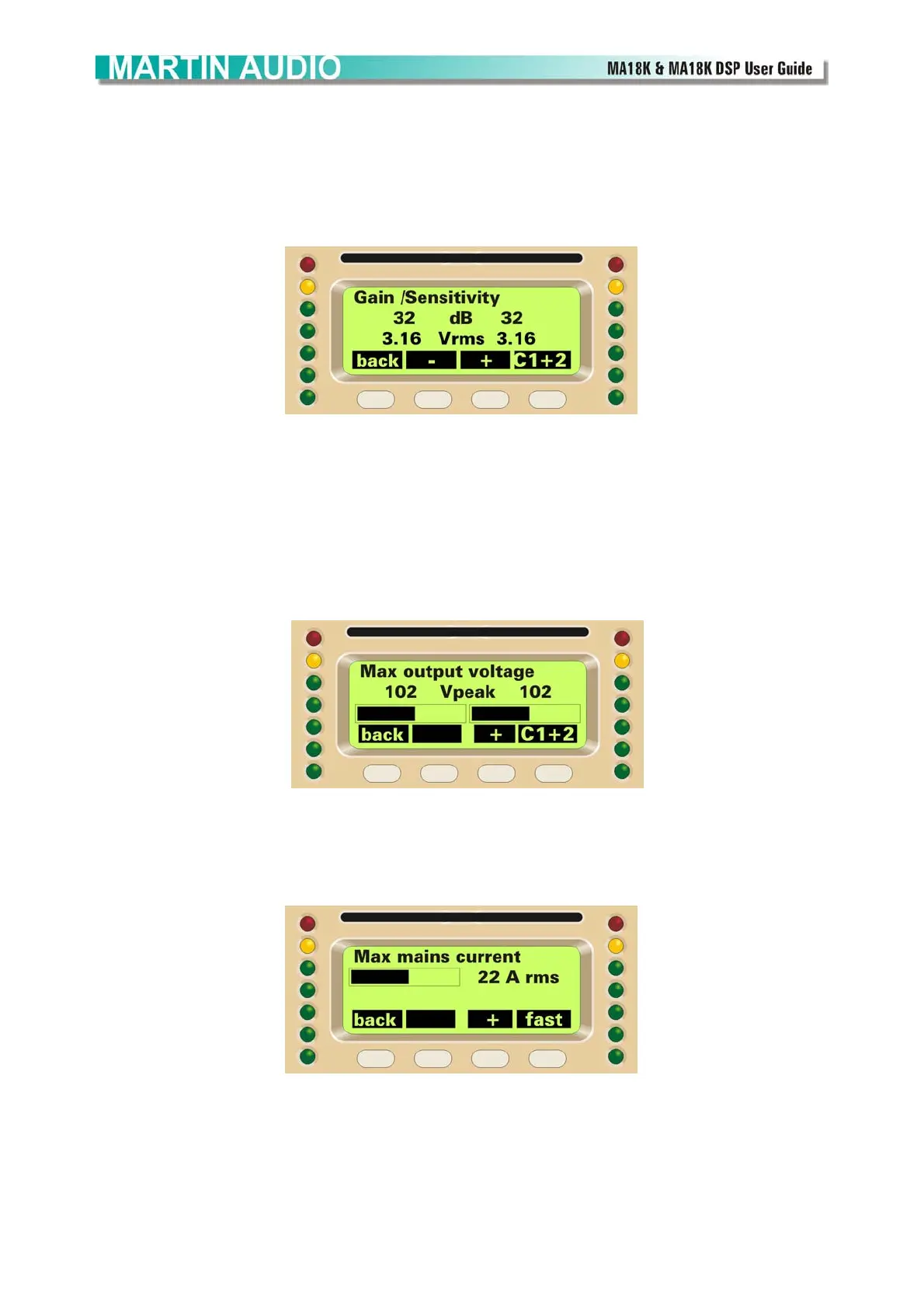 are 26, 29, 32 and 35 dB. Martin Audio strongly recommends the use of the default 32dB setting as this is
