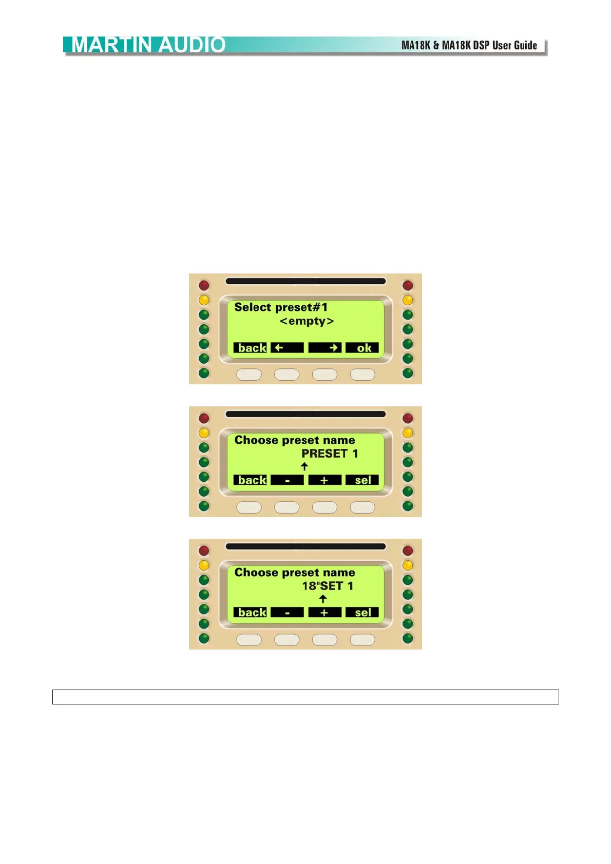 pressing sel key. Finish the procedure by pressing the ok key to store the preset.