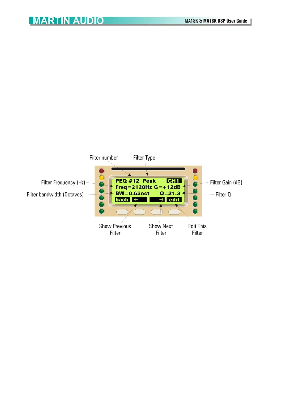 This menu lists the 16 parametric filters. You can move from filter to filter using the arrow keys.