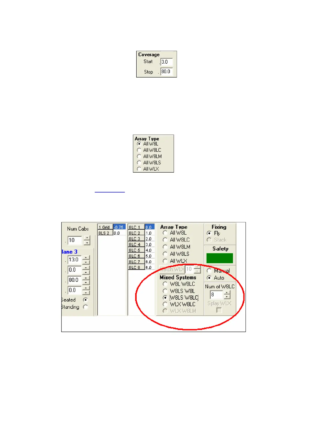 Specify the horizontal coverage distances from the front of the array. Coverage start and