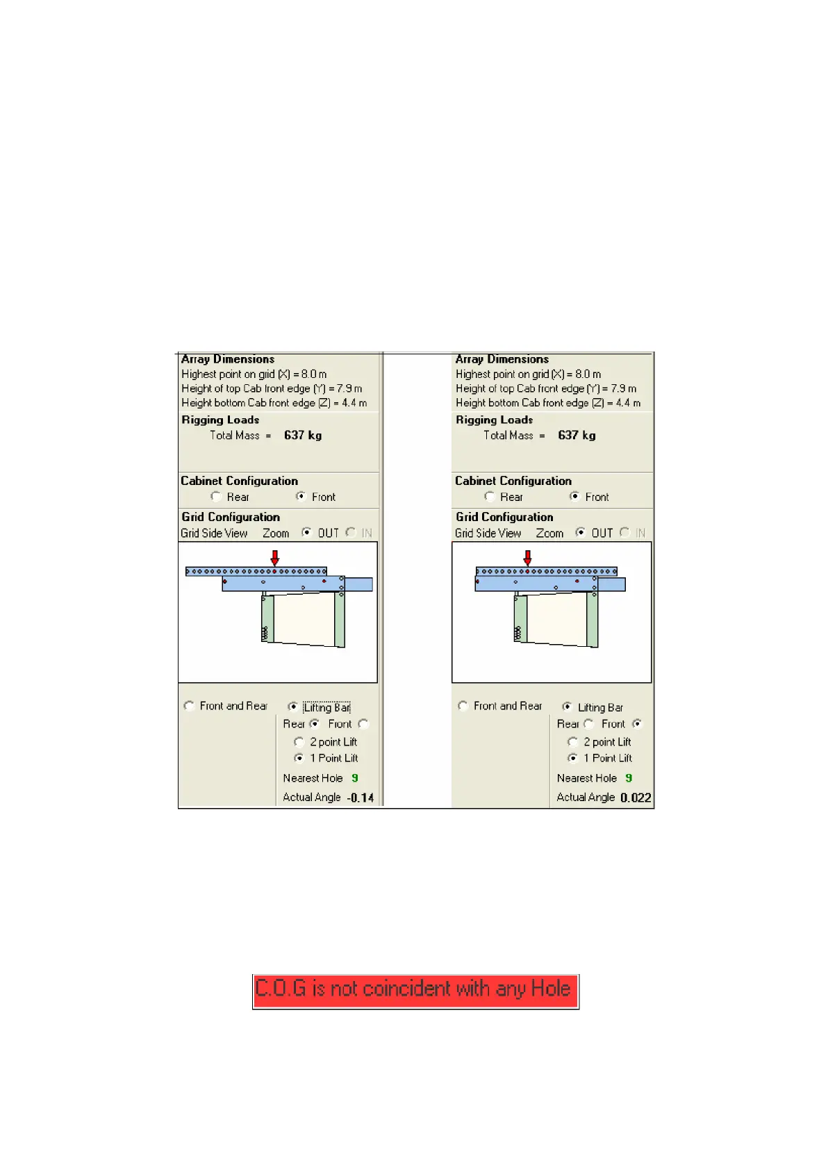 This displays the Nearest hole in the lifting bar and the Actual Angle of the grid