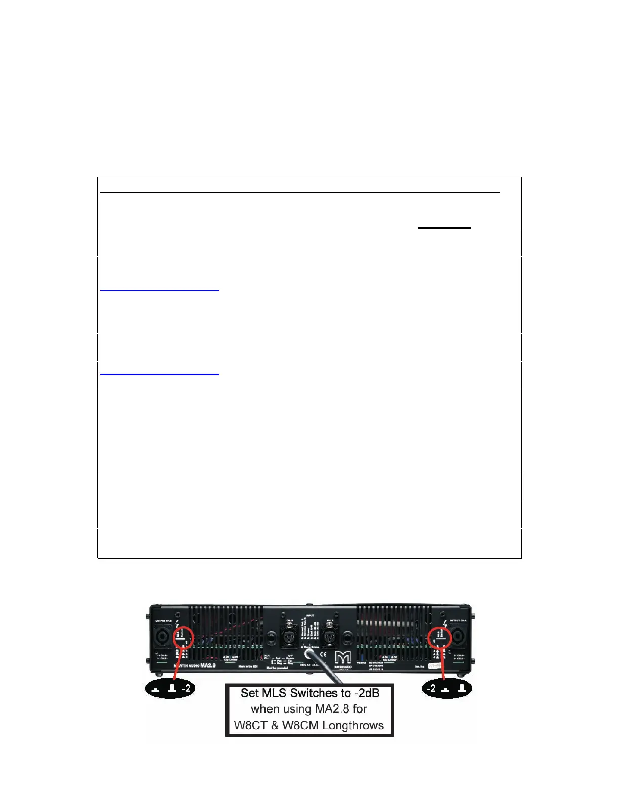 * Set Martin Audio MA2.8 rear MLS switch to -2dB.