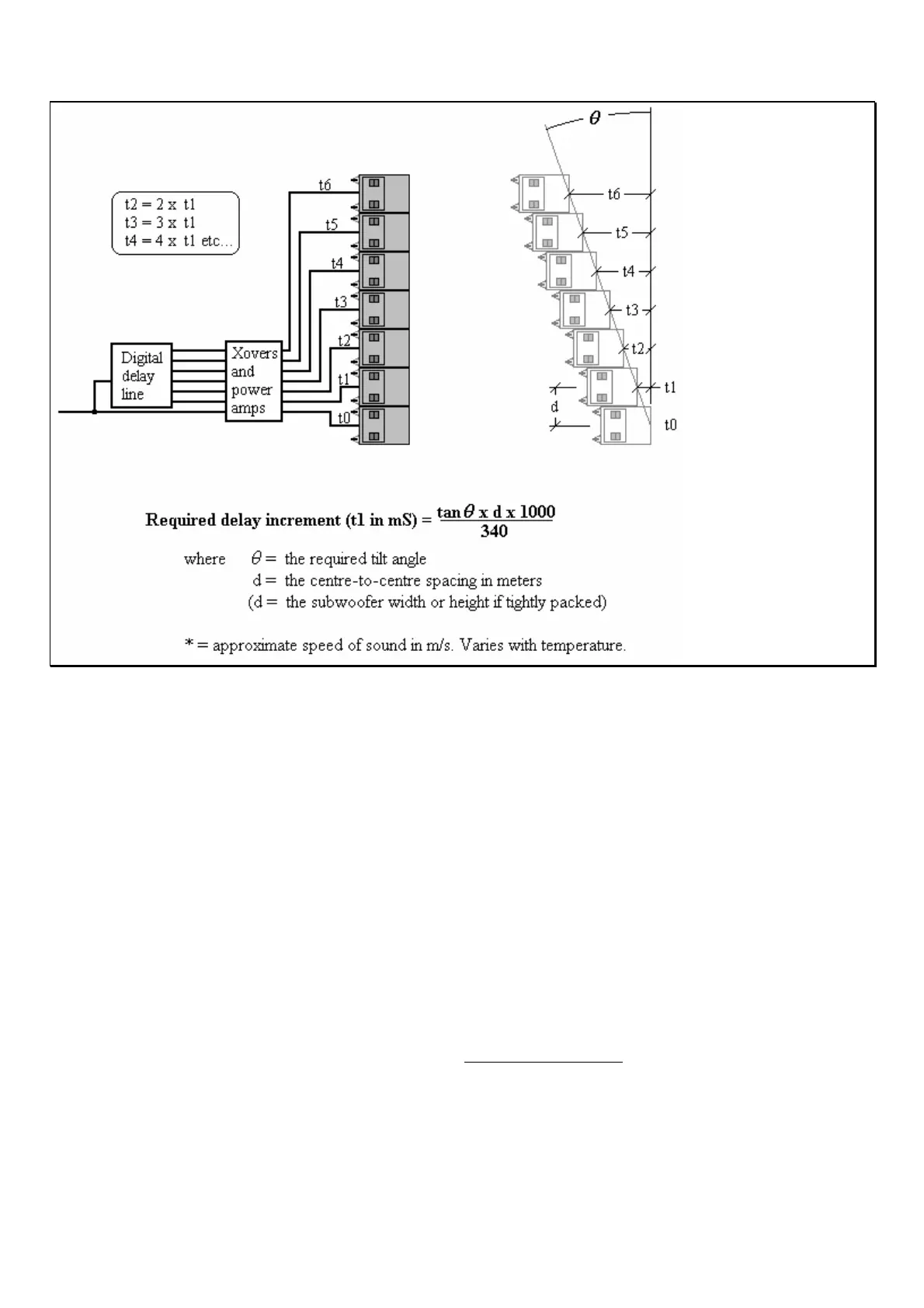 distant seats (using an inclinometer) and to calculate the required delay increment with the formula shown.
