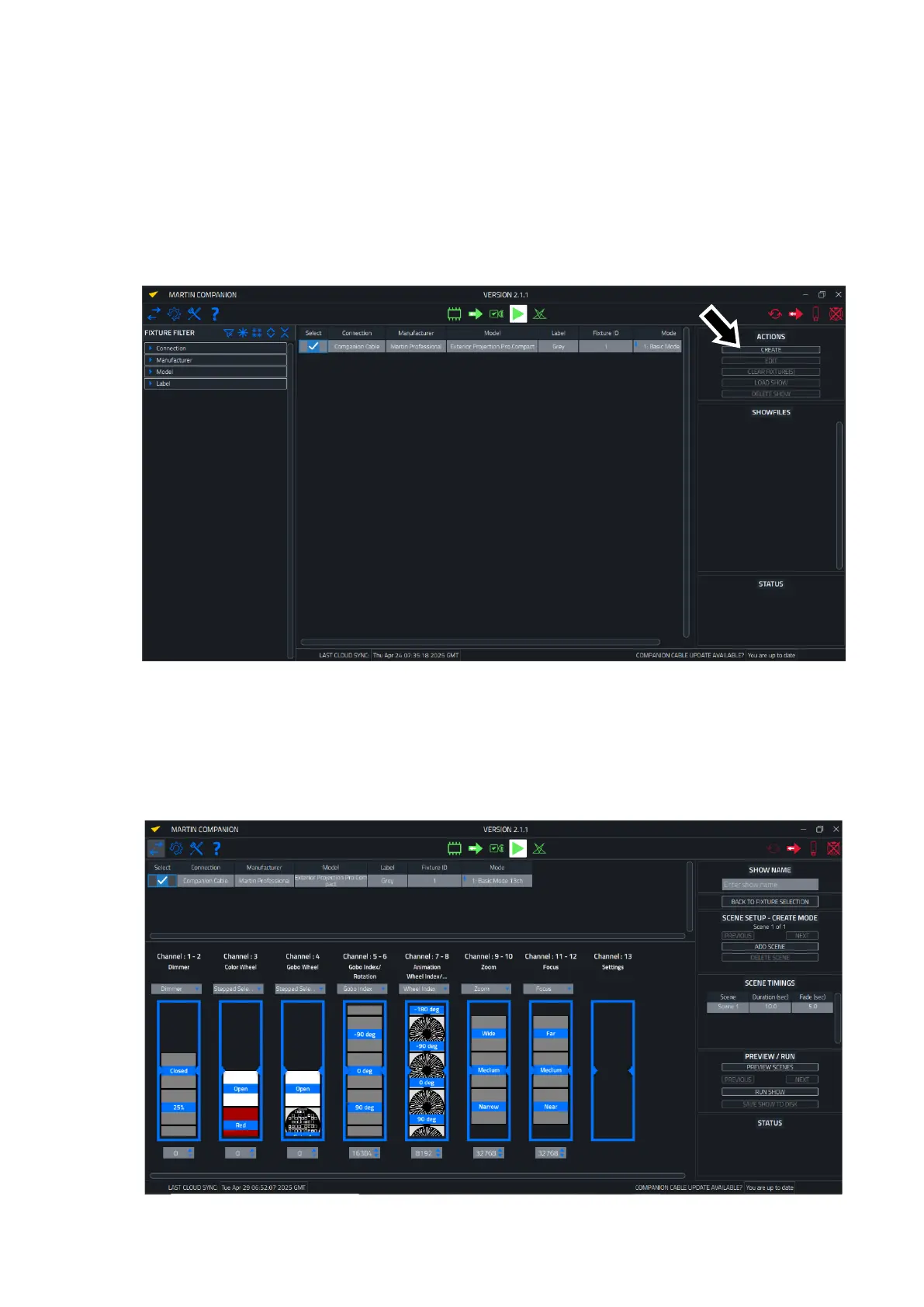 fixtures in a Standalone show have to show the same scenes). Martin Companion will