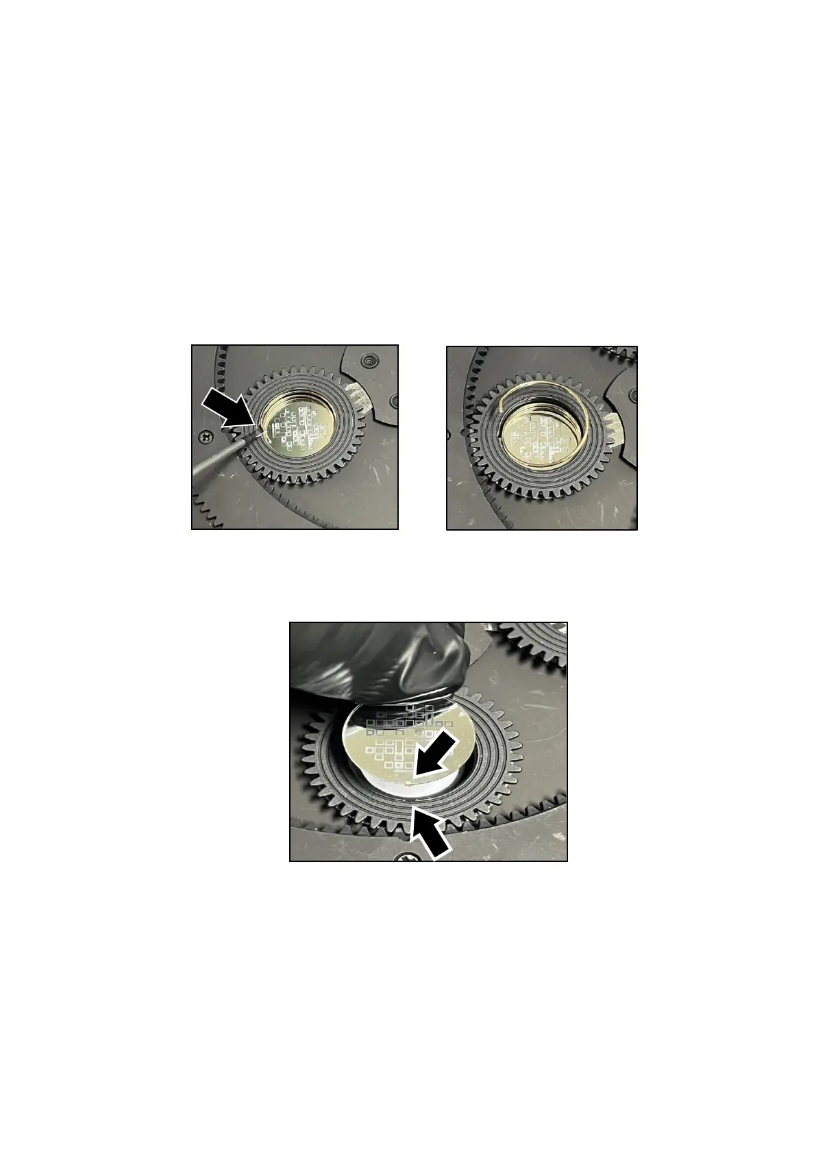 alignment marks (arrowed) in the gobo and goboholder. Lay the new gobo flat in the goboholder.