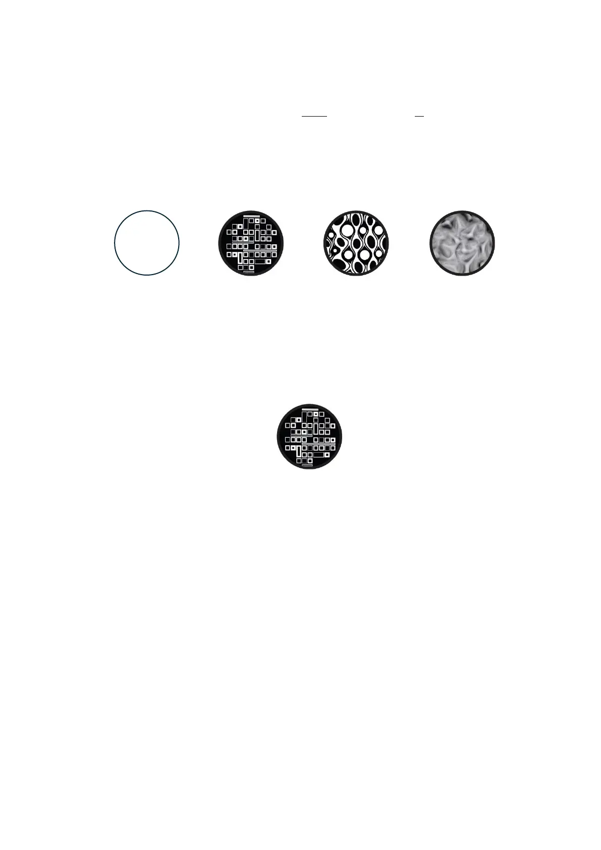 The four-slot gobo wheel is supplied configured as shown below, with the three glass gobos shown