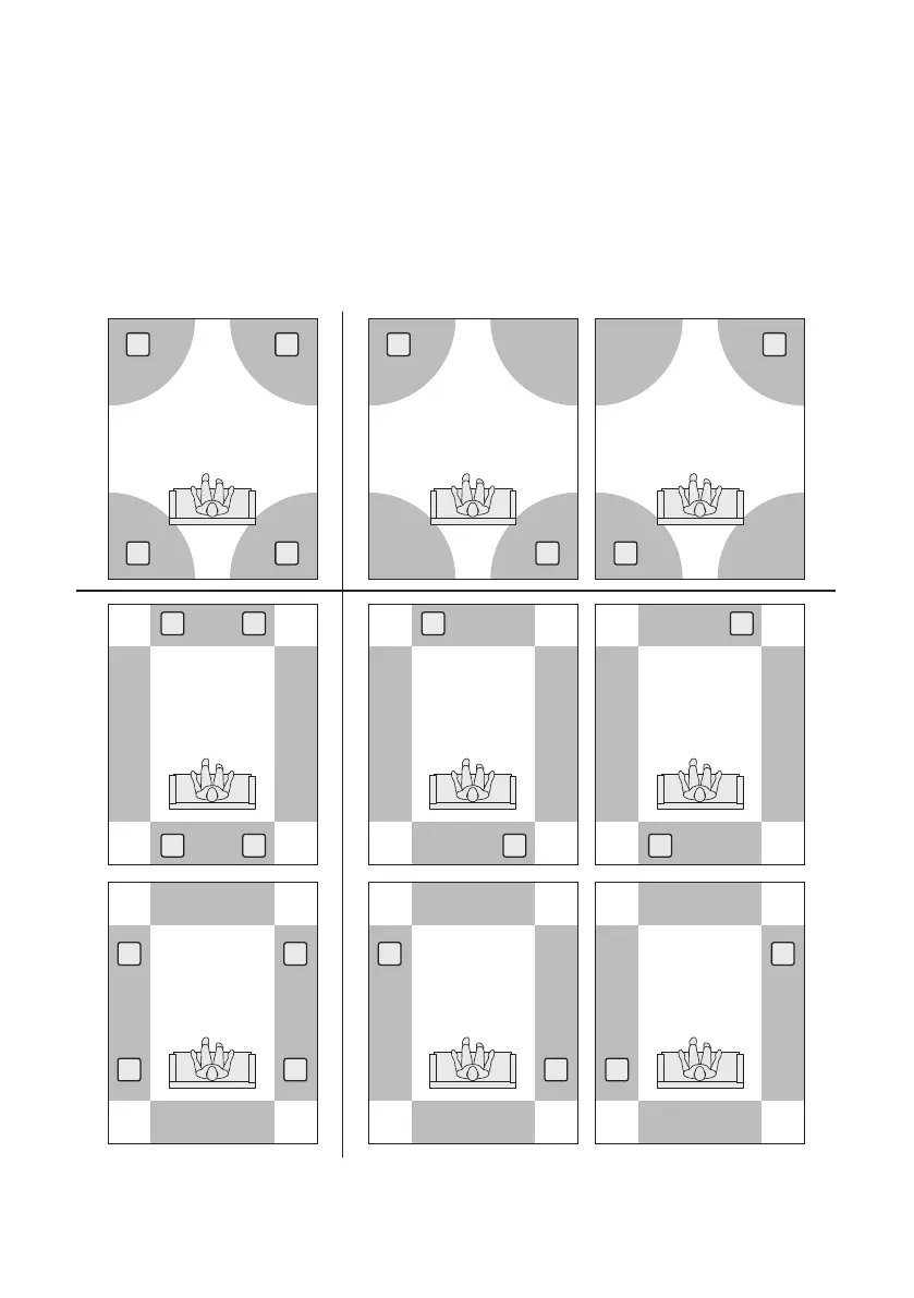 envisagez de les placer aux extrémités opposées de la pièce, comme illustré dans les schémas ci-dessous.