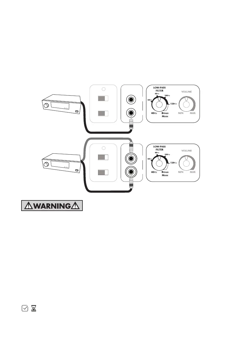damage may occur to the subwoofer if operation is attempted from an incorrect AC power source.