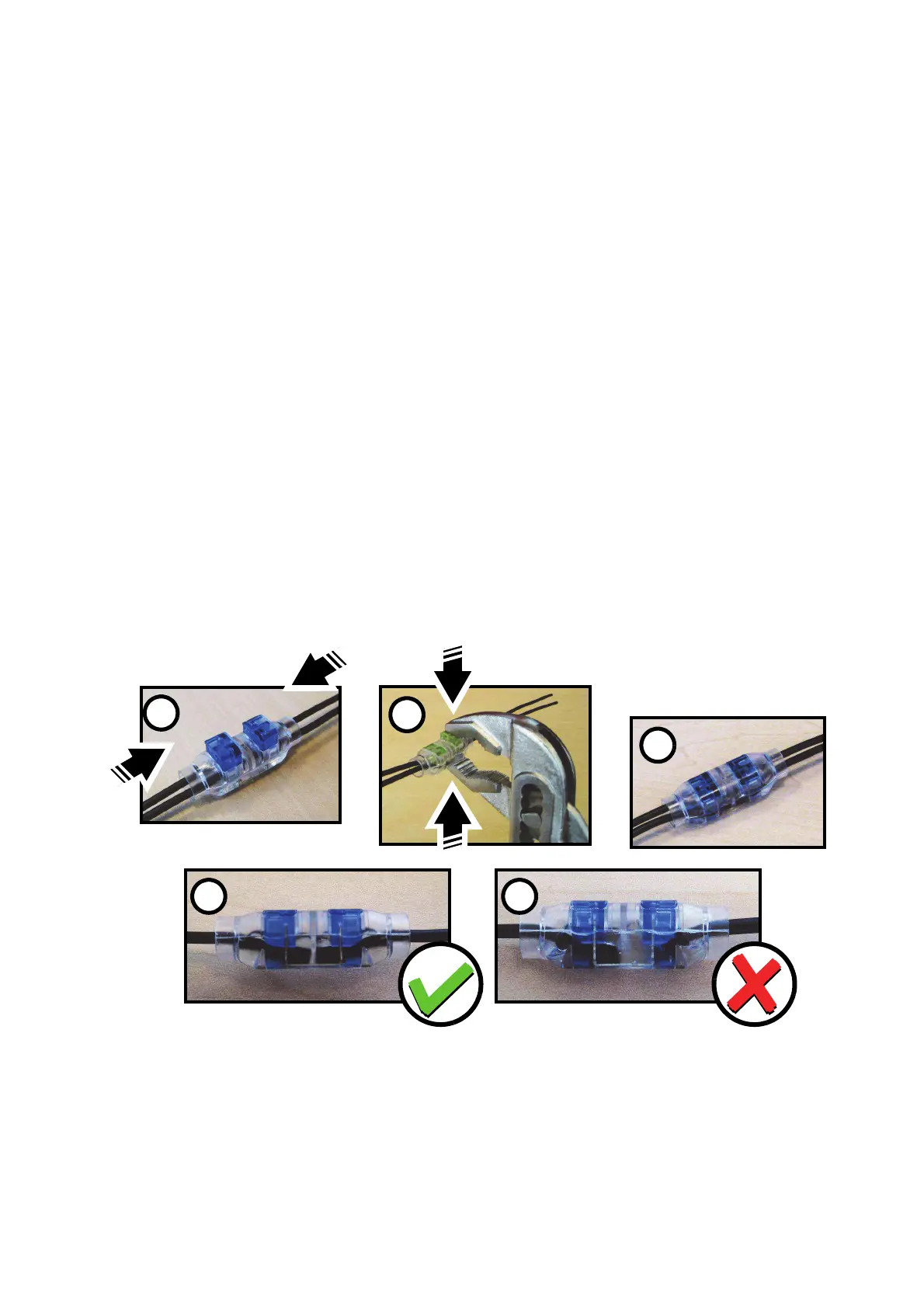 4. See Figure 1. Do not strip insulation from wire ends. Push two matching pairs of wire ends into a splice