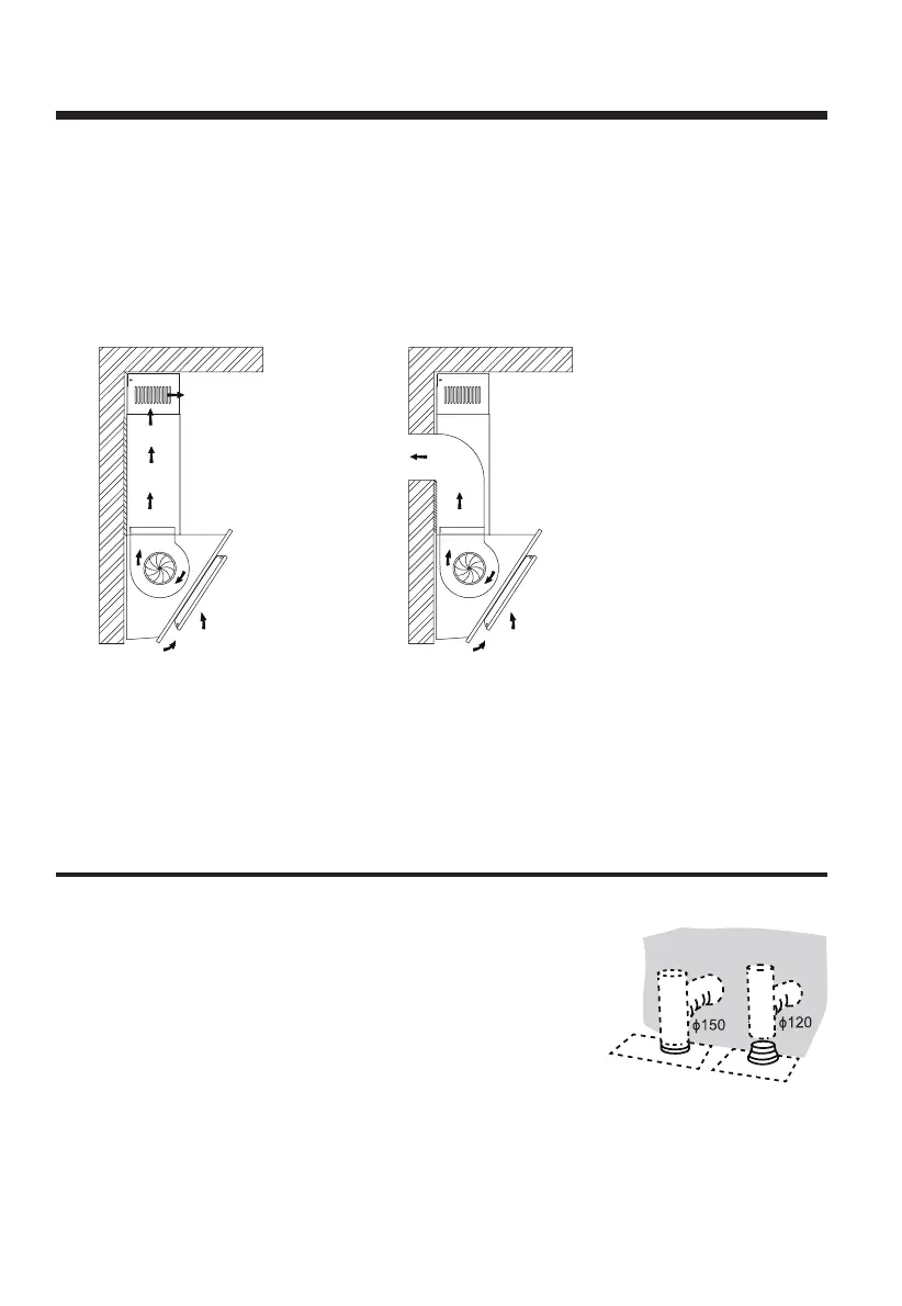 Hinweis: Für den Umluftmodus ist kein Rohr erforderlich, es müssen Kohlelter installiert werden.