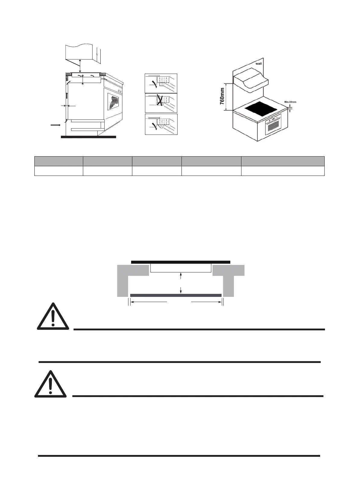 distance of 50mm from the bottom of the hob. Follow the requirements