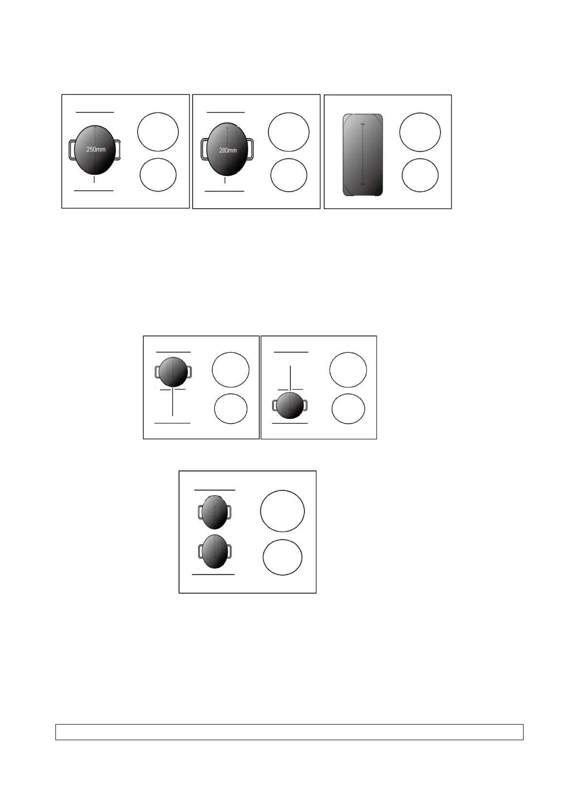 entole: pentole da 250 mm o 280 mm di diametro (le pentole quadrate o ovali sono