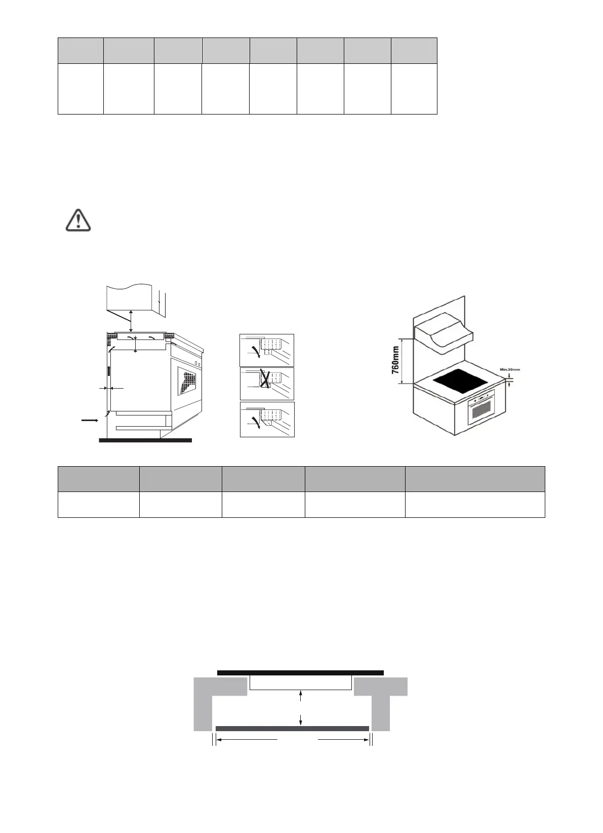 : La distanza di sicurezza tra il piano di cottura e l’armadietto soprastante il piano deve essere