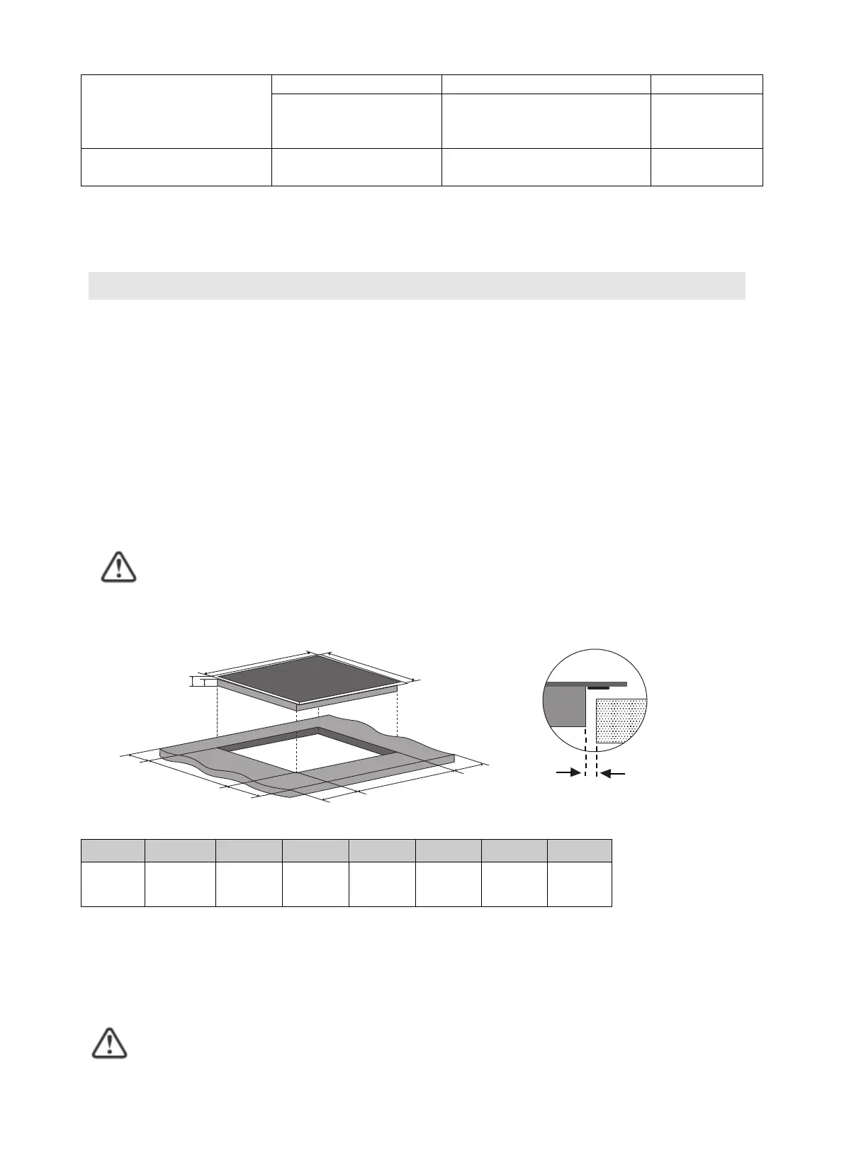 Nota: La distanza di sicurezza tra il piano di cottura e l’armadietto soprastante il piano deve essere