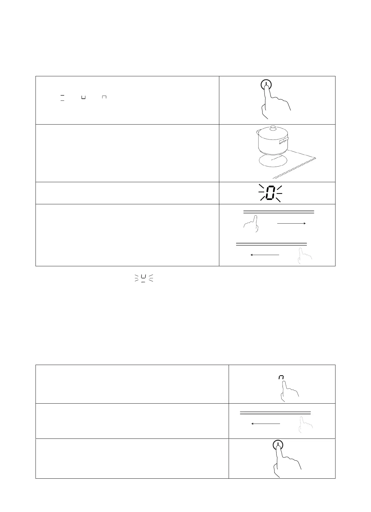 show “ ” or “ ” or “ ”, indicating that the induction hob has