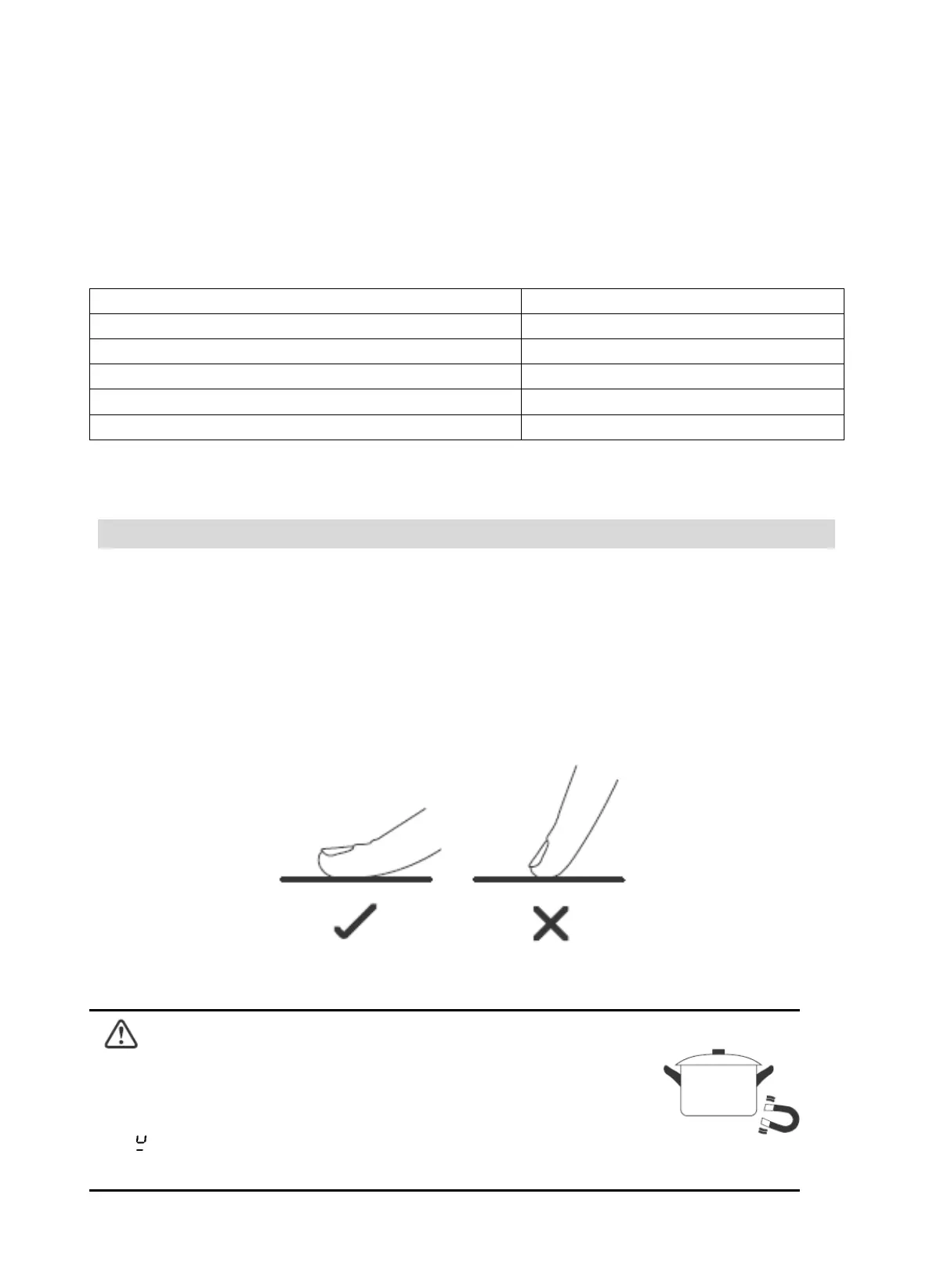 • You can check whether your cookware is suitable by carrying out a magnet test.