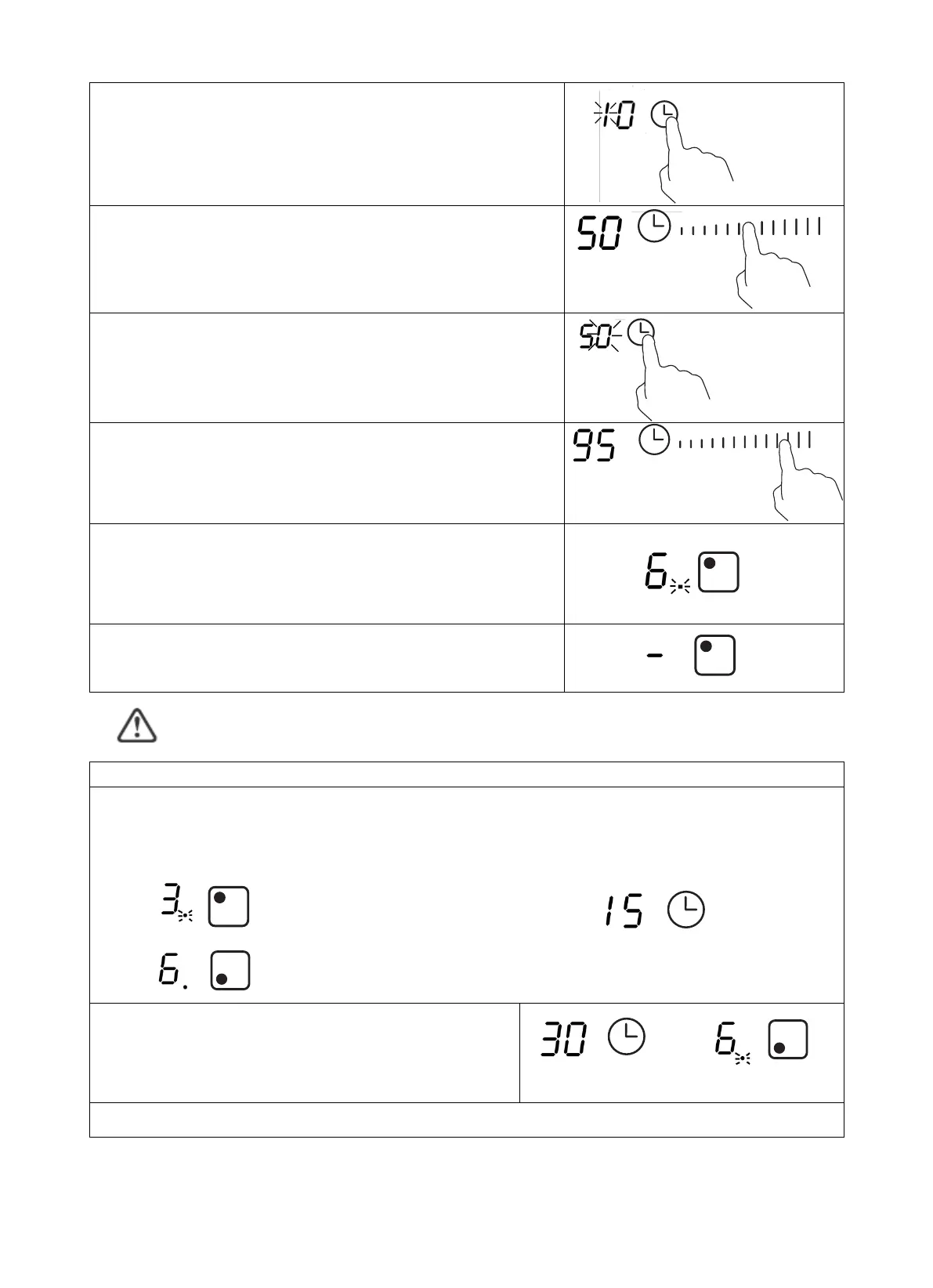 Touch the heating zone selection control, the corresponding timer will be shown in the timer indicator.