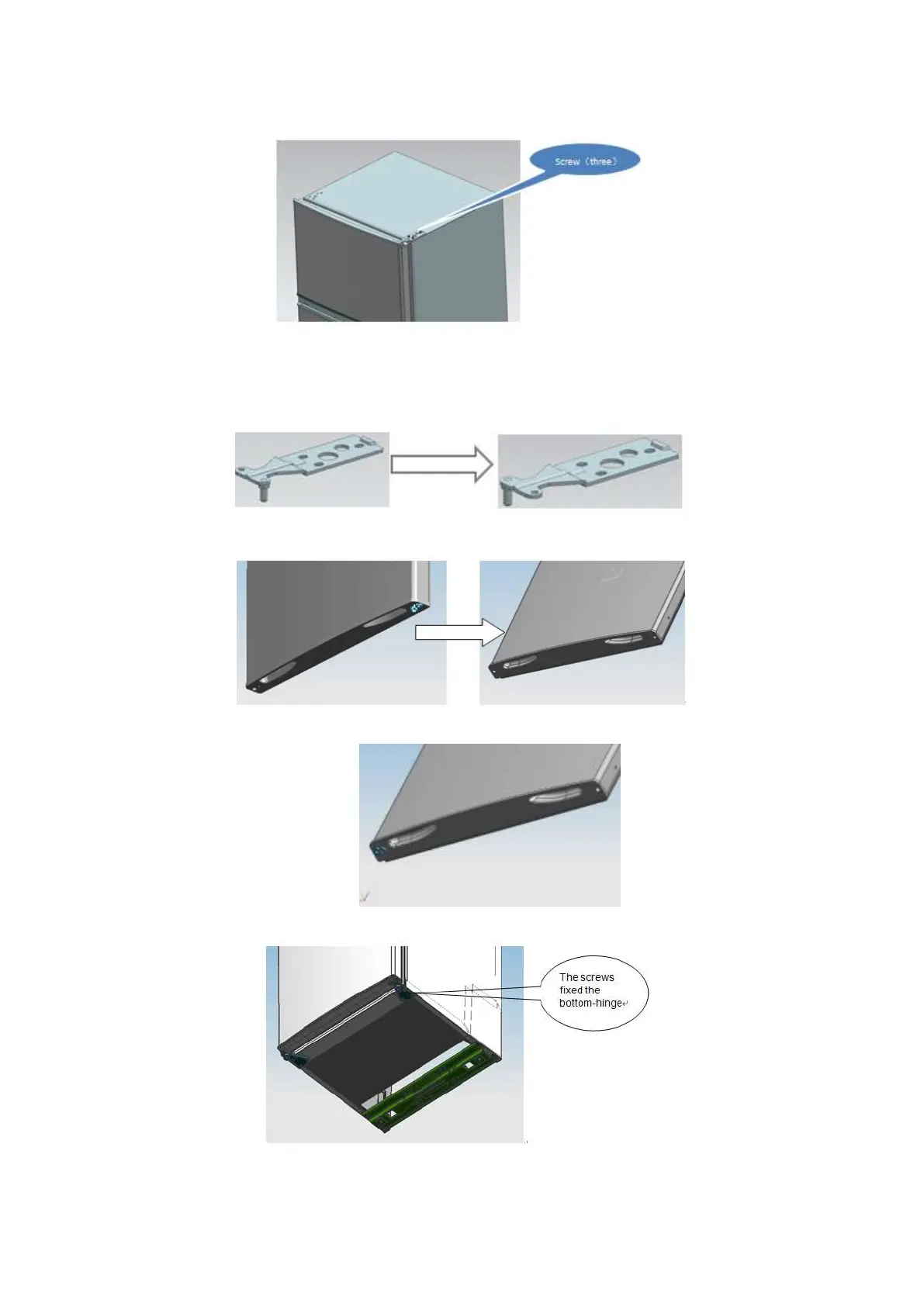 4) Disassemble the screws fixed the bottom-hinge with cross-slot screwdriver .