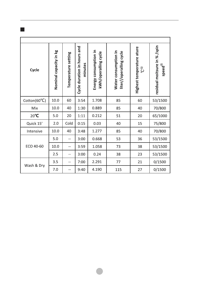 Wash and Dry cycle are indicative only.