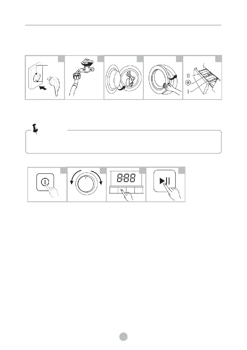Aprire il rubinetto Caricare la lavatrice Chiudere l’oblò