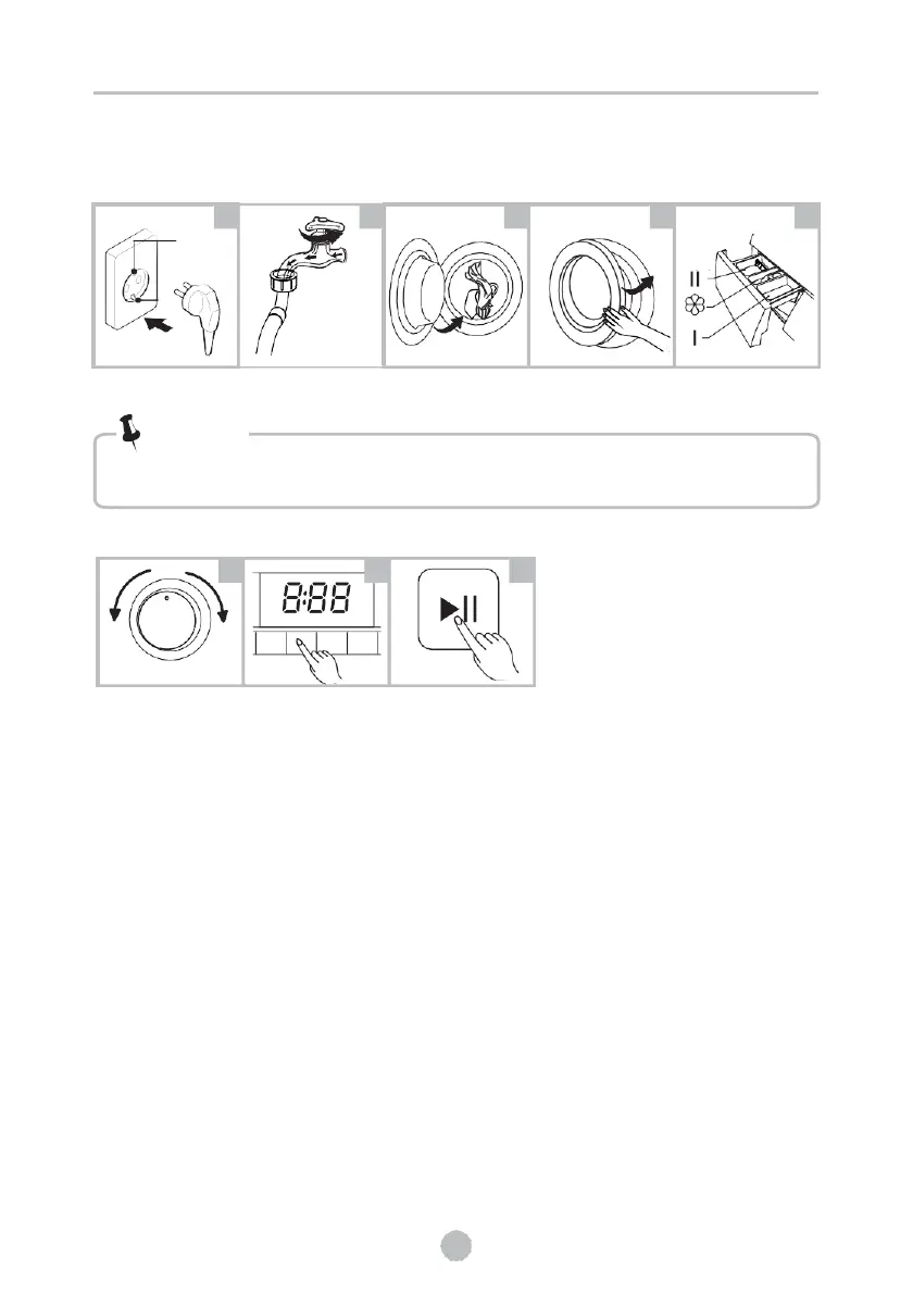 Aprire il rubinetto Caricare la lavatrice Chiudere l'oblò