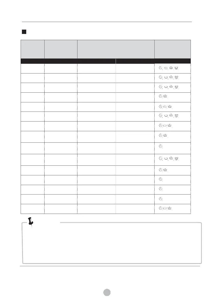 • Nella tabella sono riportati i vari cicli e le opzioni di regolazione