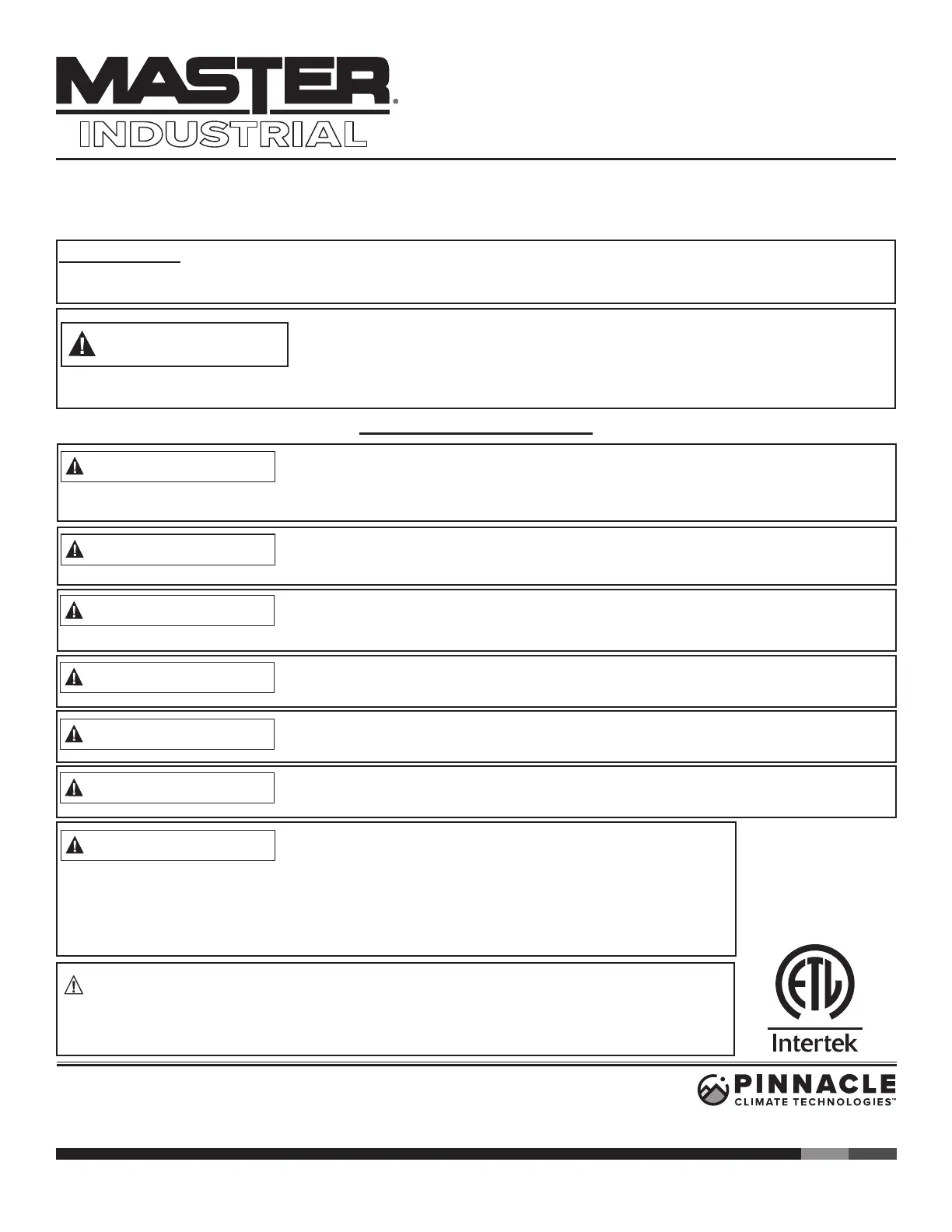 Télécopieur : 320-251-2922 • Web : www.masterindustrialproducts.com • Courriel : info@pinnacleclimate.com