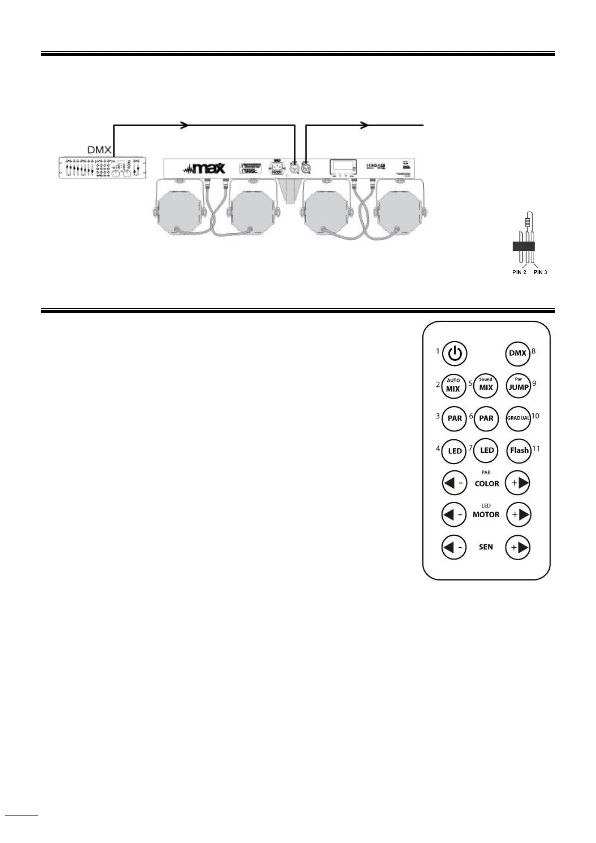 volgende apparaat totdat alle apparaten zijn aangesloten. Als je een lichtstuurtafel gebruikt met 5-pins DMX-connector dient u
