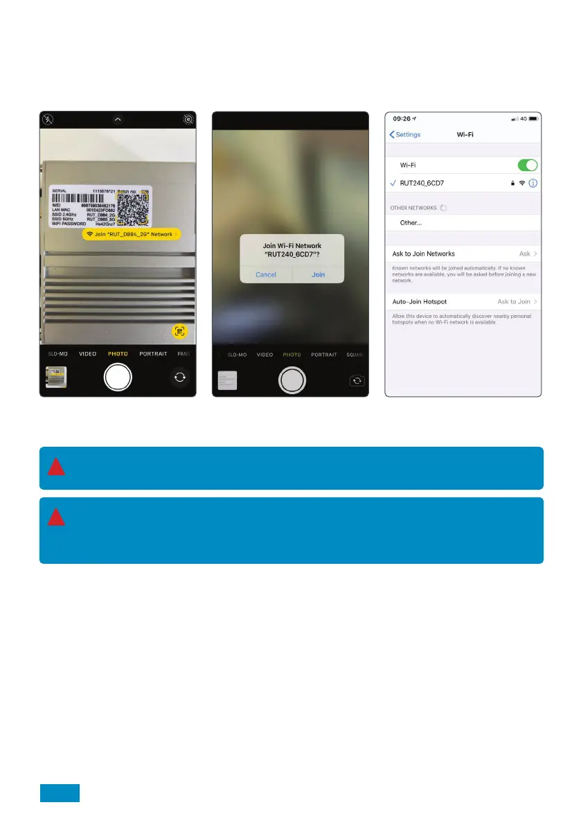 camera at the QR code on the back on the router. When prompted, select ‘join’. Your device will automatically