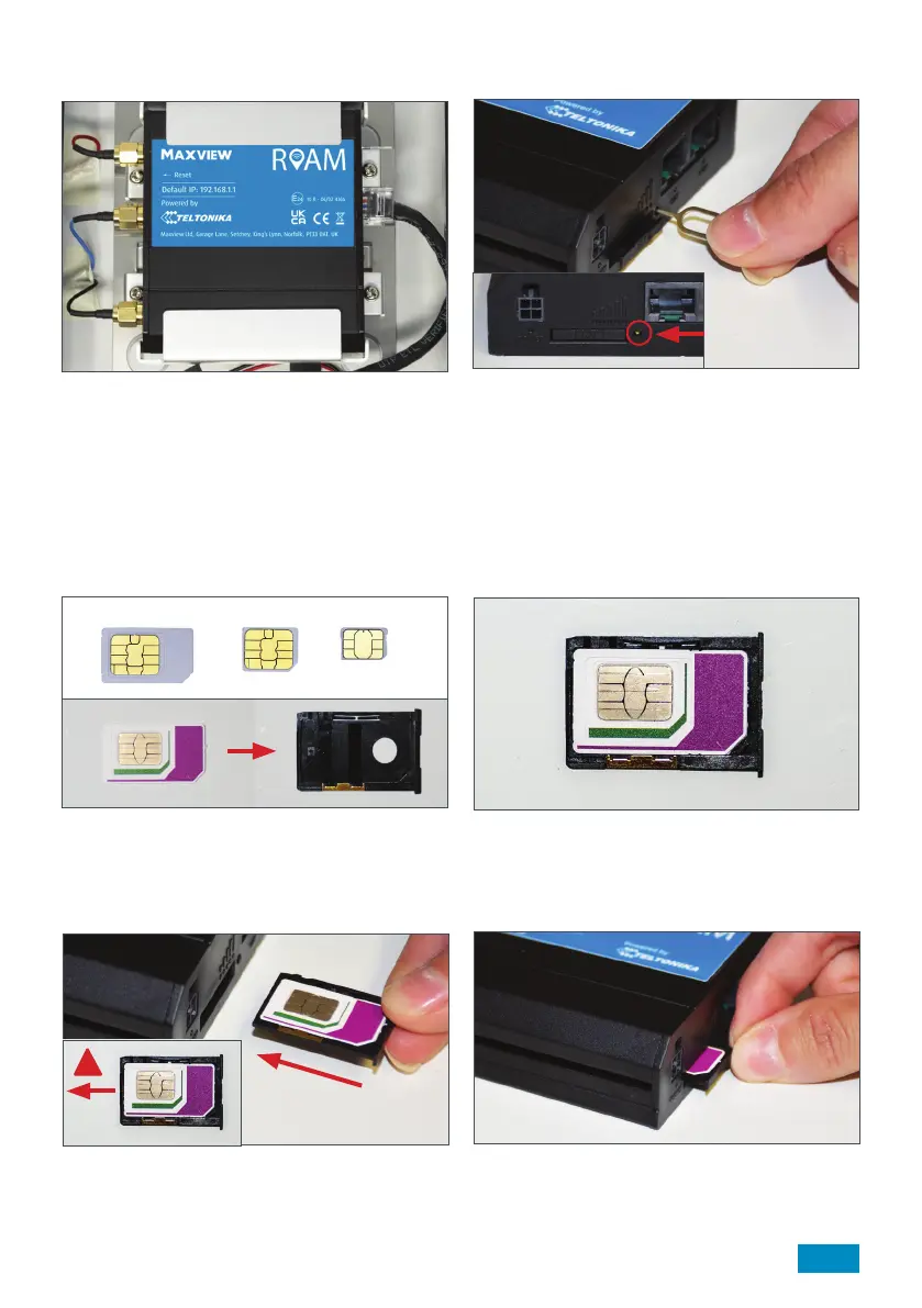 4. Insert the SIM tray back into the router. The metal chip should still be facing upwards and the SIM text on