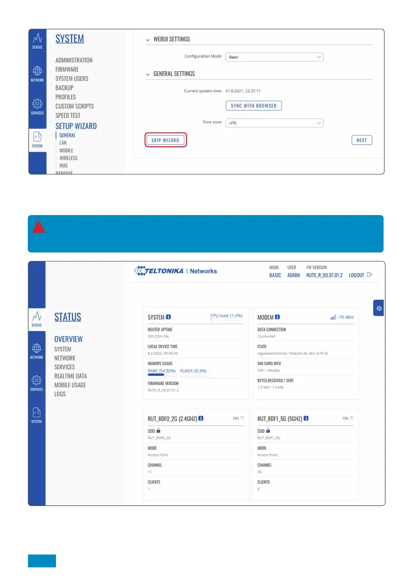 Competent users can navigate through other settings, however we recommend skipping the Set Up