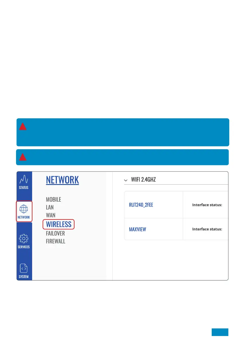 appears, select ‘Wireless’ then click Scan under ‘WIFI 2.4GHz’ if you wish to have a standard Wi-Fi network.
