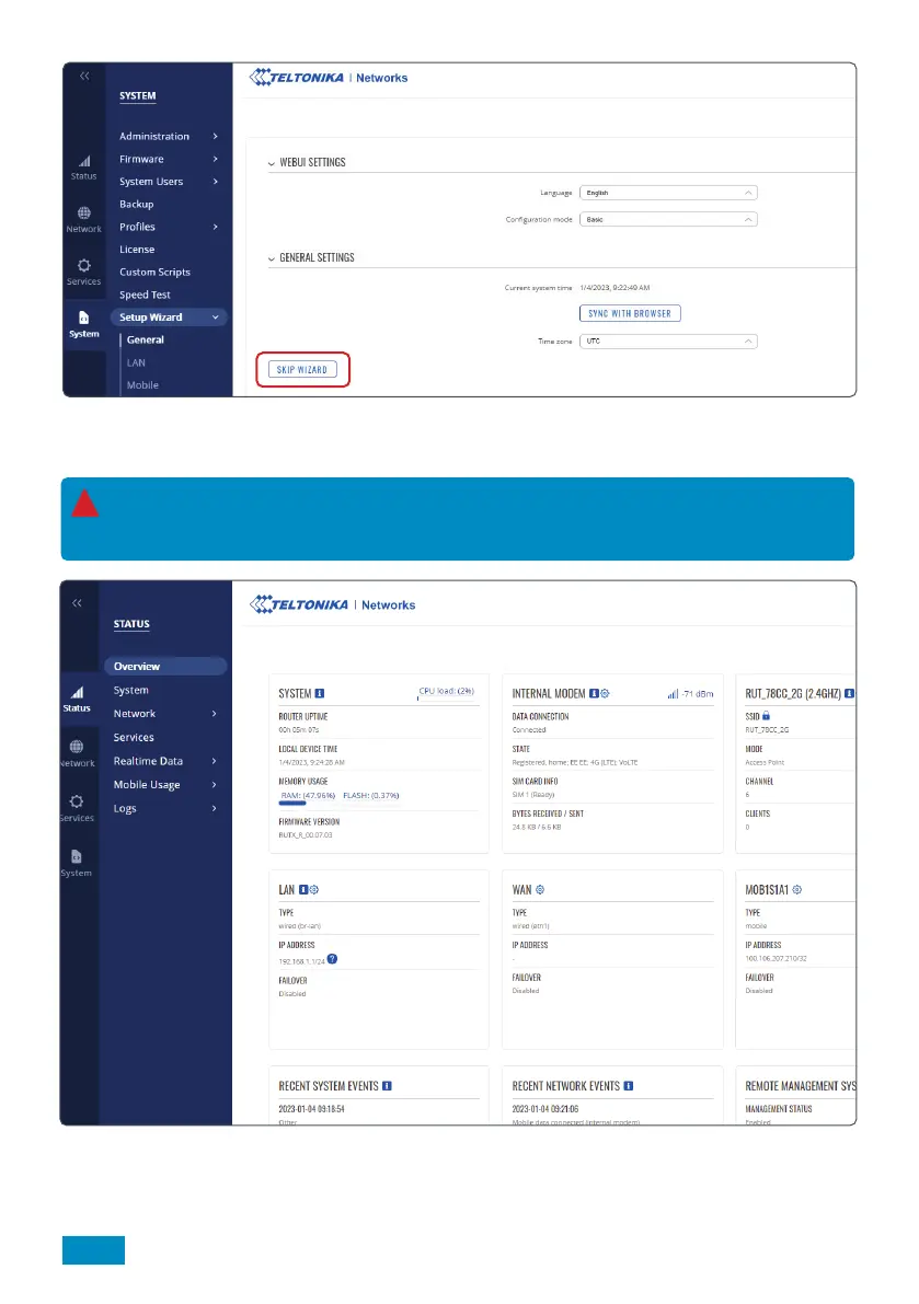 Competent users can navigate through other settings, however we recommend skipping the Set Up