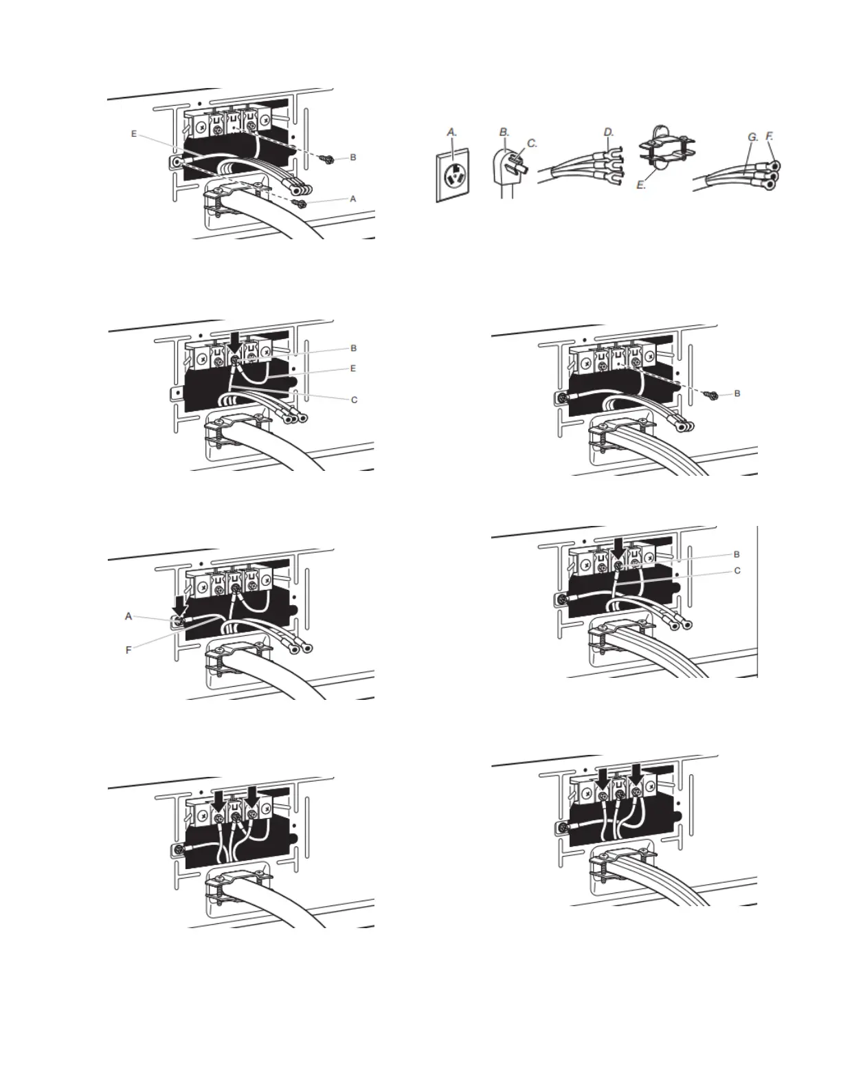 (blanc ou centre) (C) du câble d’alimentation sous la vis de la