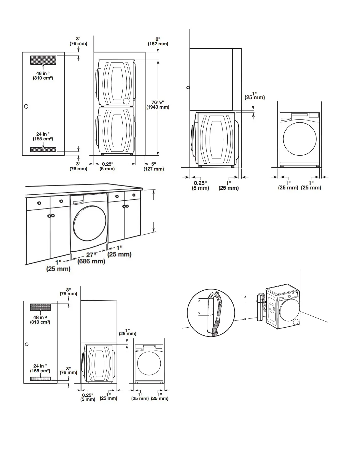 install no higher than 48" (1.2 m) from bottom of washer. If you
